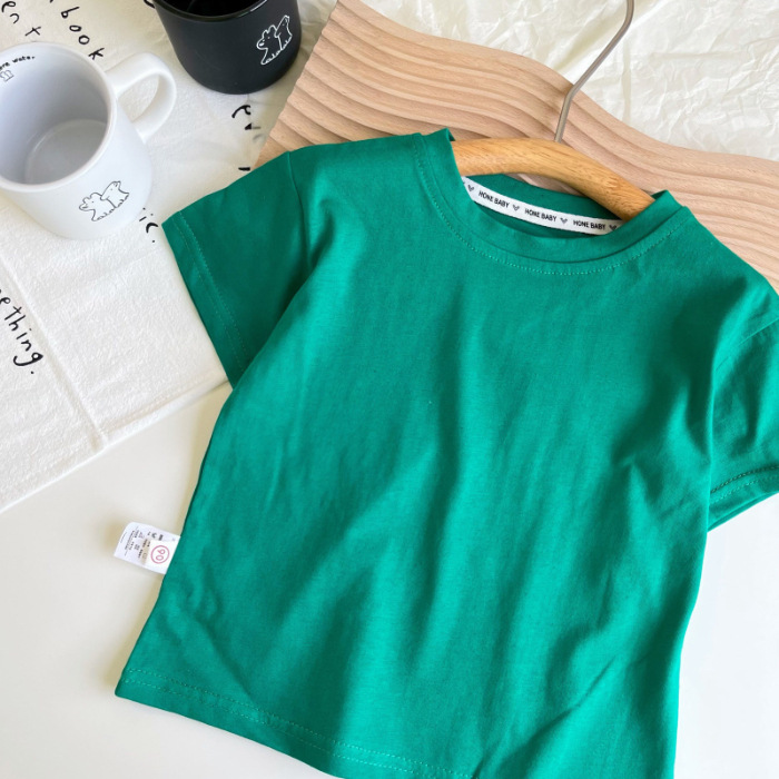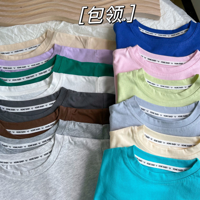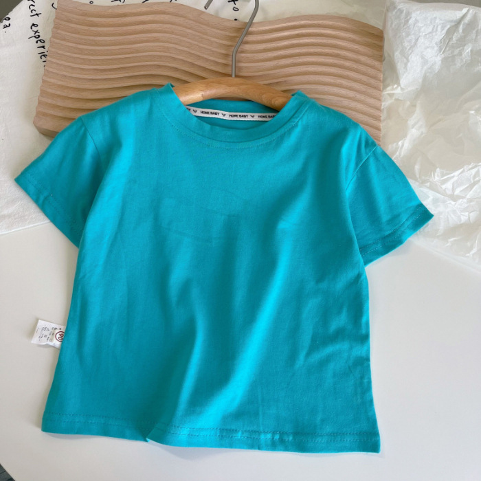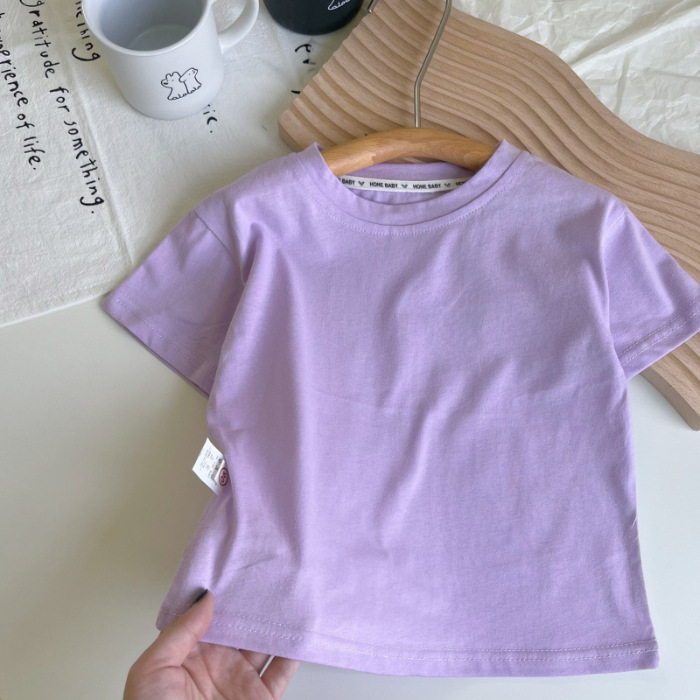 중소 어린이 여름, 단색 100% 코튼 반팔 티셔츠 남성 및 여성 베이비 언더 셔츠 얇은 원피스 배달