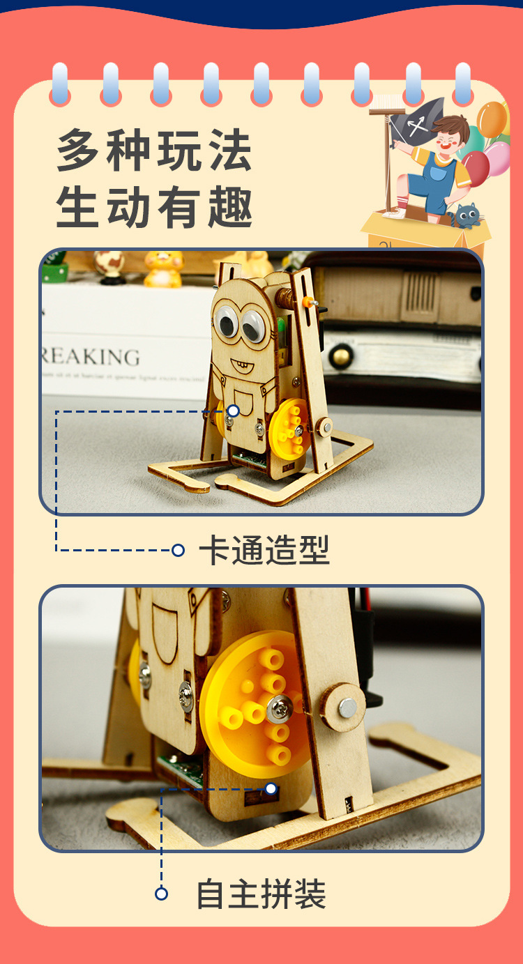 지능형 유도 음성 제어 걷는 로봇 과학 작은 수동 어린이 과학 기술 작은 생산 작은 발명 재료 패키지