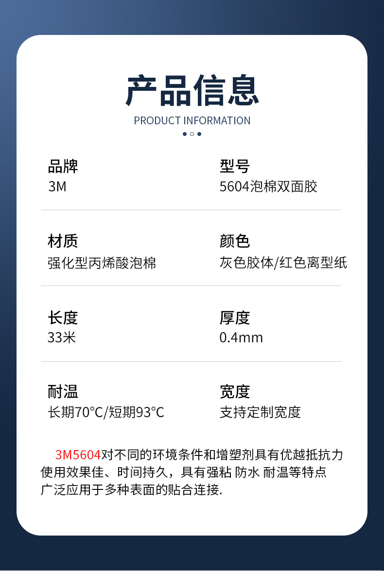 3M 5604VHB 양면 접착 초박형 이음매없는 스펀지 방수 및 온도 저항성 이중 목적 접착 테이프 자동차 및 가정 가치 양면 접착 테이프