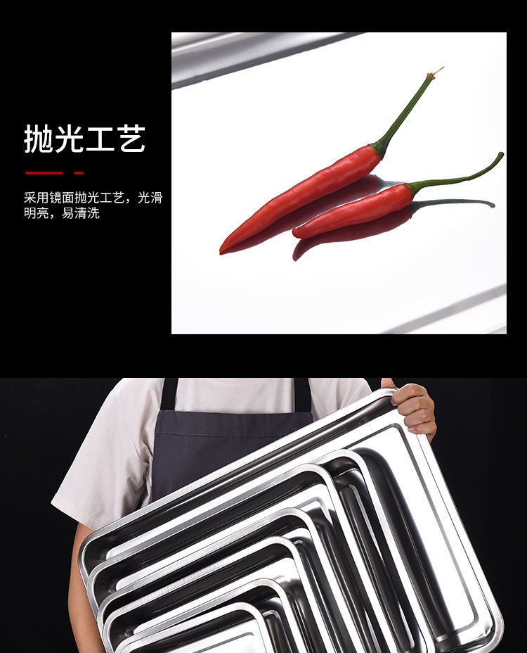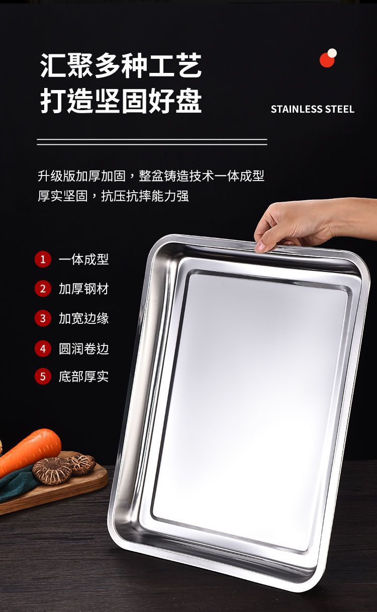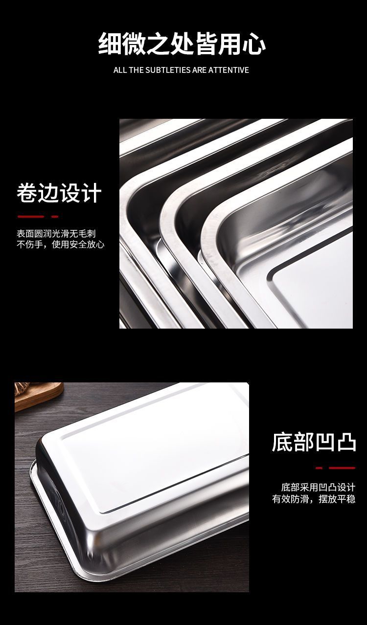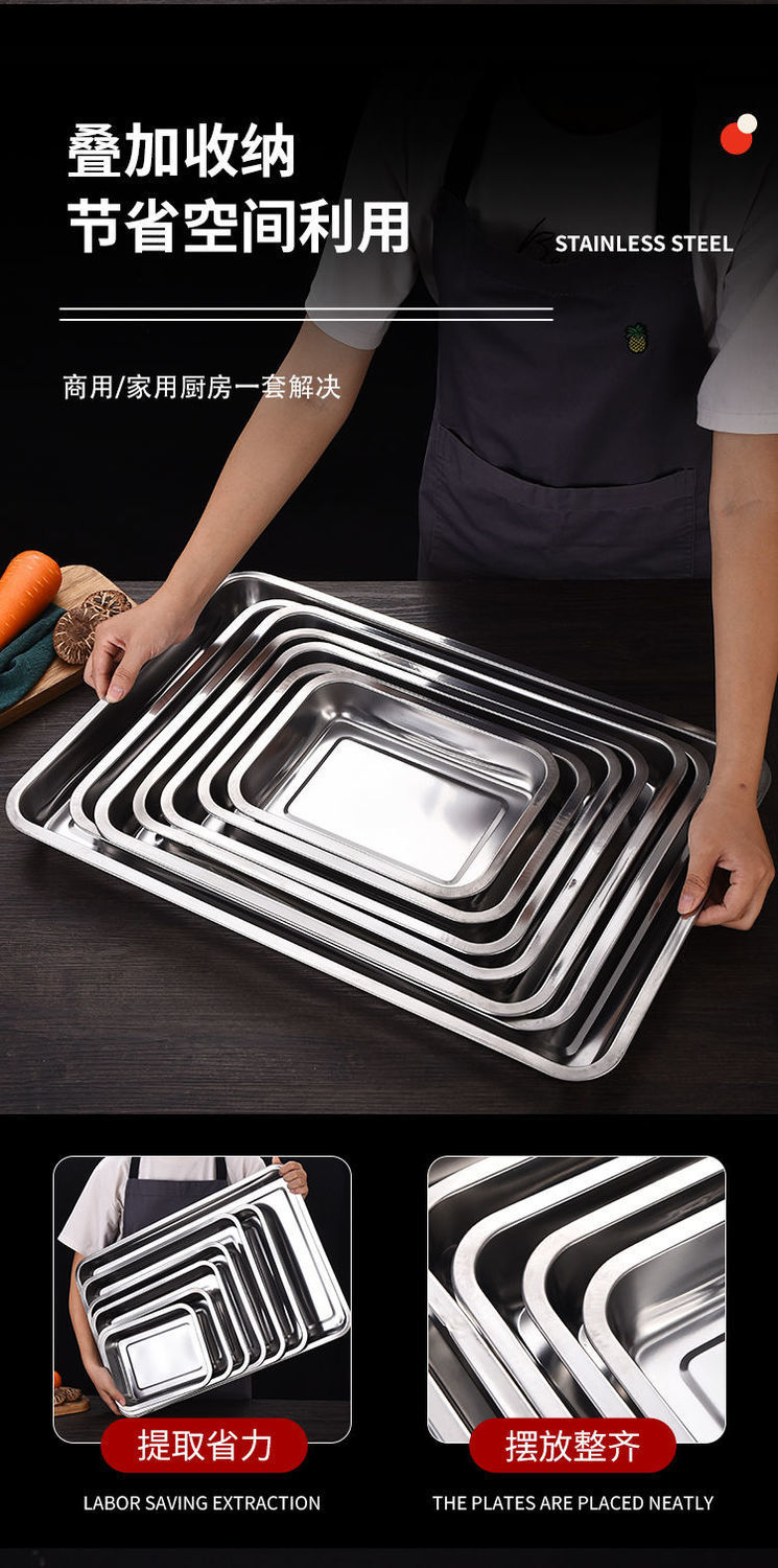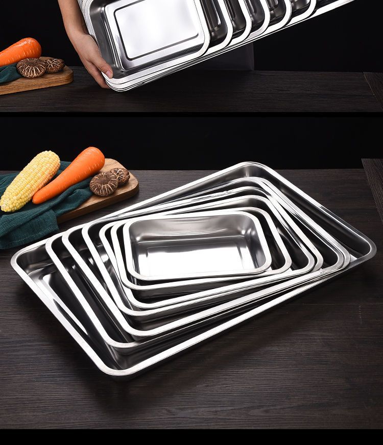 스테인레스 스틸 스퀘어 플레이트 트레이 상업용 매점 식당 찐 쌀 플레이트 대용량 구이 생선 플레이트 멀티 사이즈 직사각형 플레이트