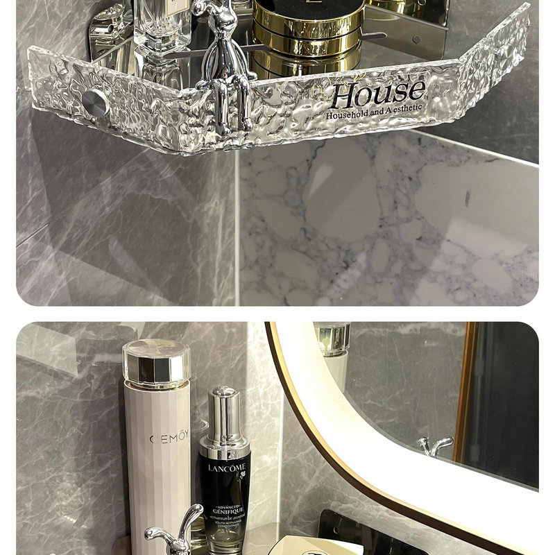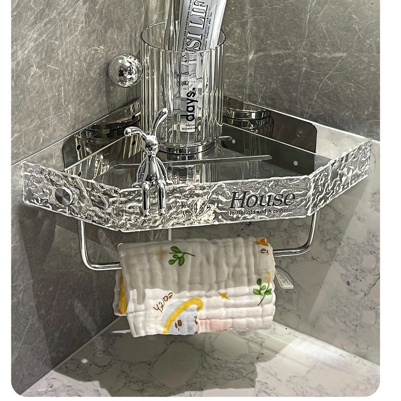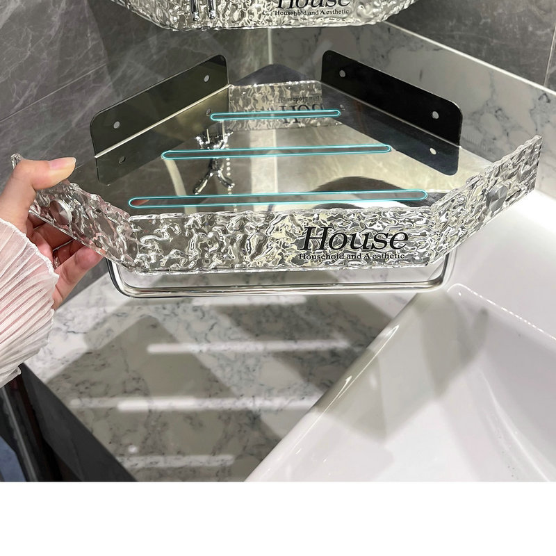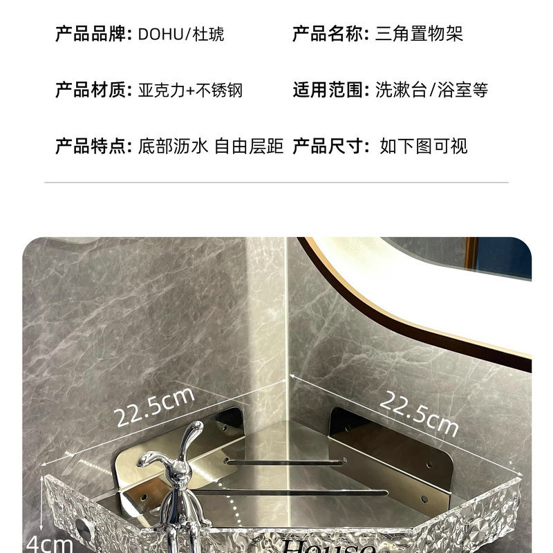 아크릴 욕실 스토리지 랙 펀치 프리 샤워 벽걸이 욕실 세면대 보관 코너 삼각대