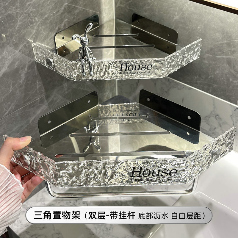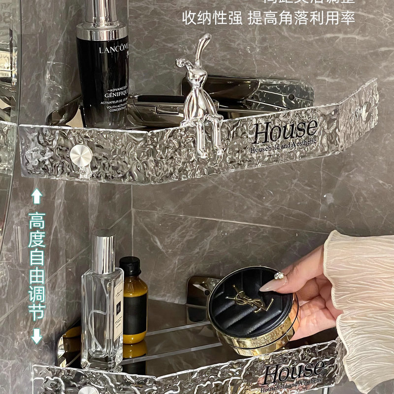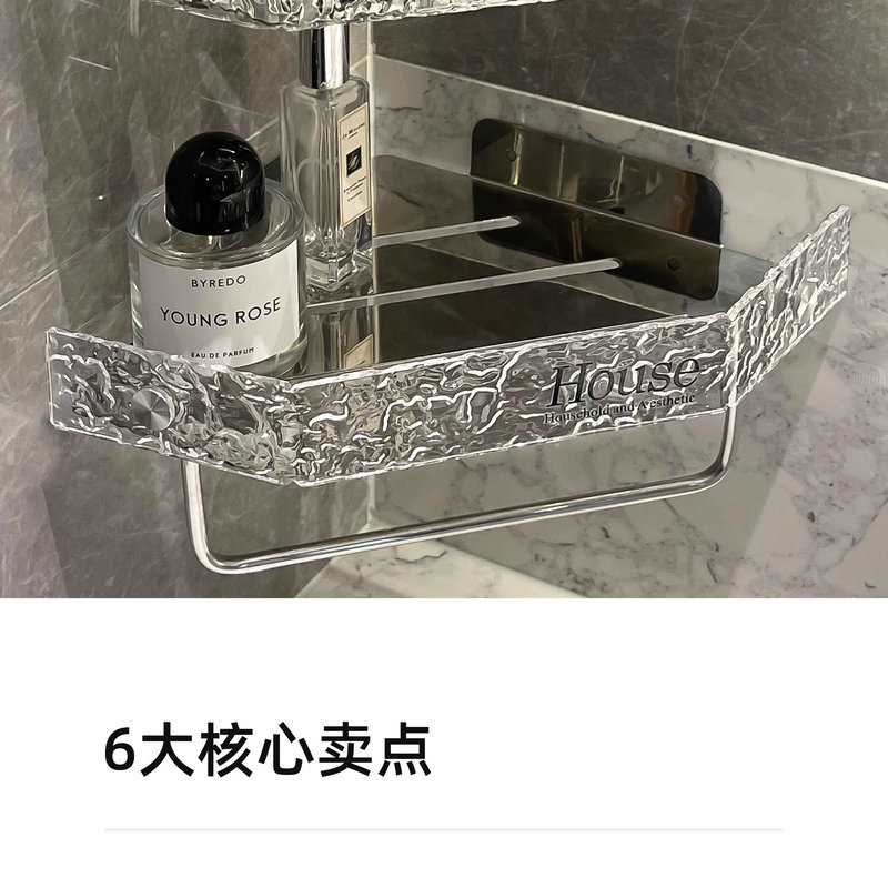 아크릴 욕실 스토리지 랙 펀치 프리 샤워 벽걸이 욕실 세면대 보관 코너 삼각대스토어 가기