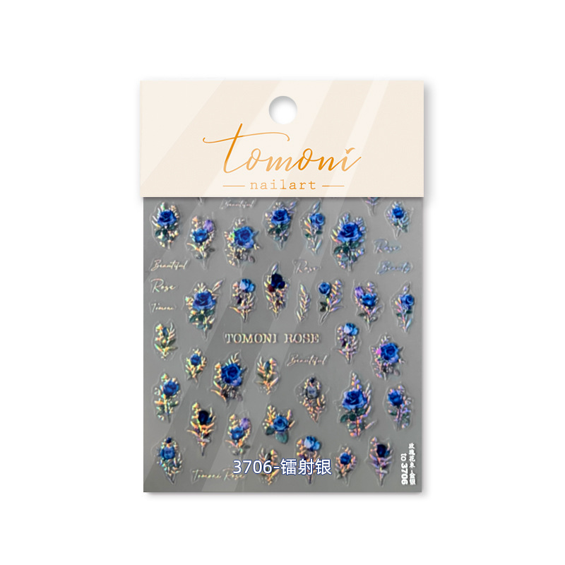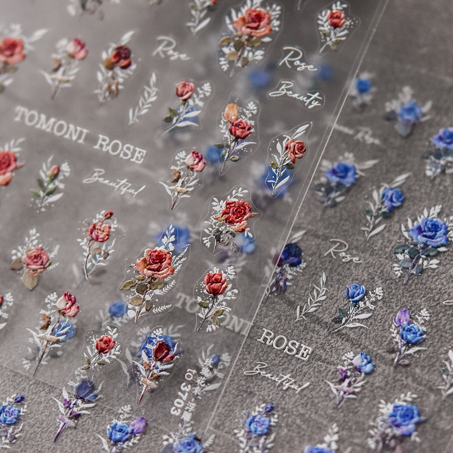 Tomoni 양각 네일 스티커 인기있는 빈티지 네일 스티커 공장 도매 일본 장미 꽃다발 3703스토어 가기