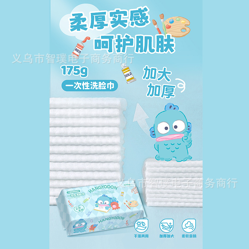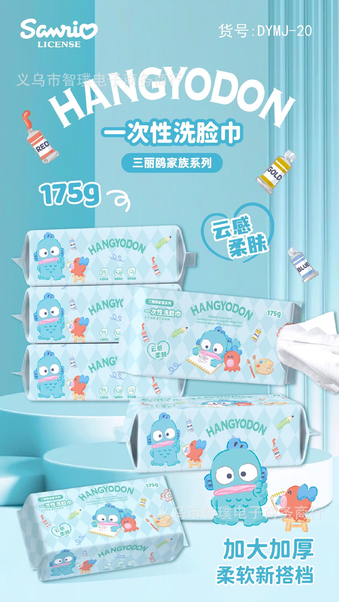 산리오 시리즈 페이스 타올 Ugly Fish Hanton 정품 공인 두꺼운 탈착식 페이스 타올 펄 패턴 타월스토어 가기