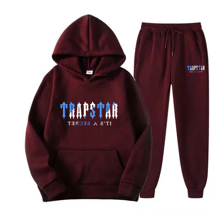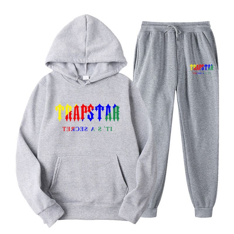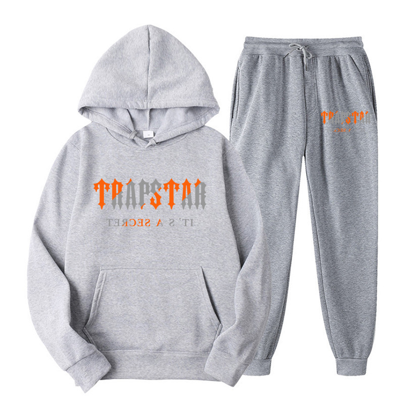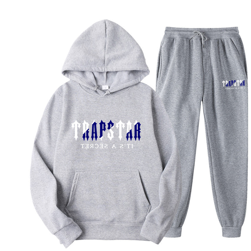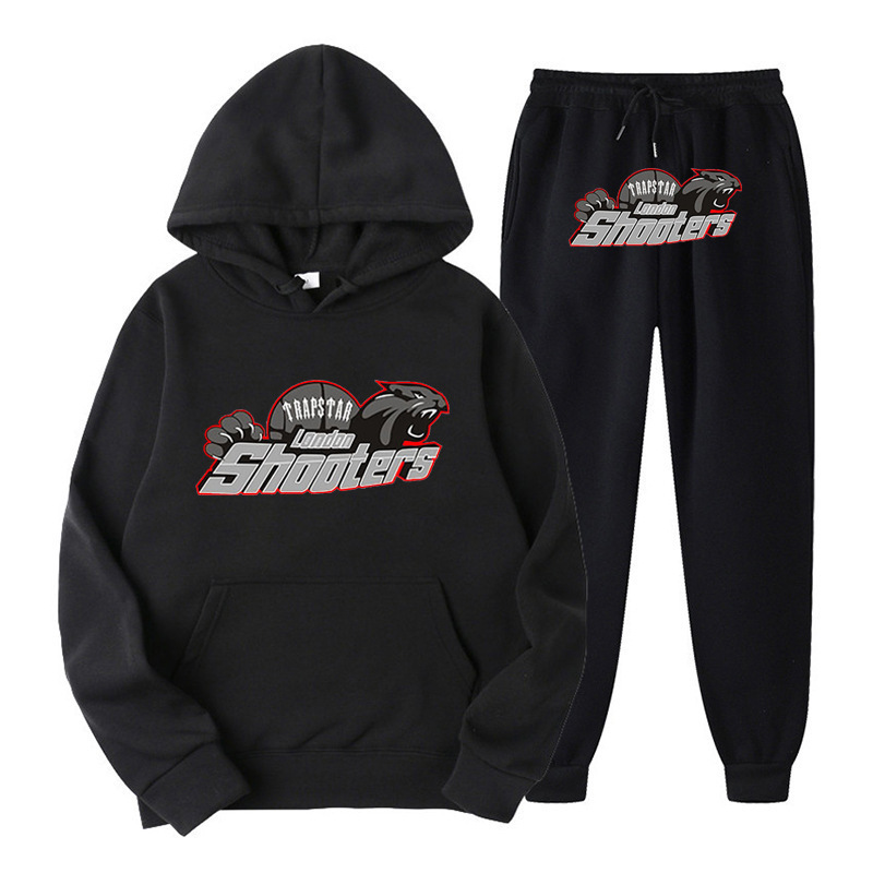 국경을 넘는 유럽과 미국의 TRAPSTAR 편지 인쇄 남성과 여성의 스포츠웨어 양털 투피스 루즈 후드 스웨트 셔츠 세트