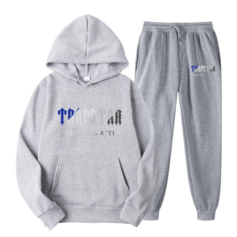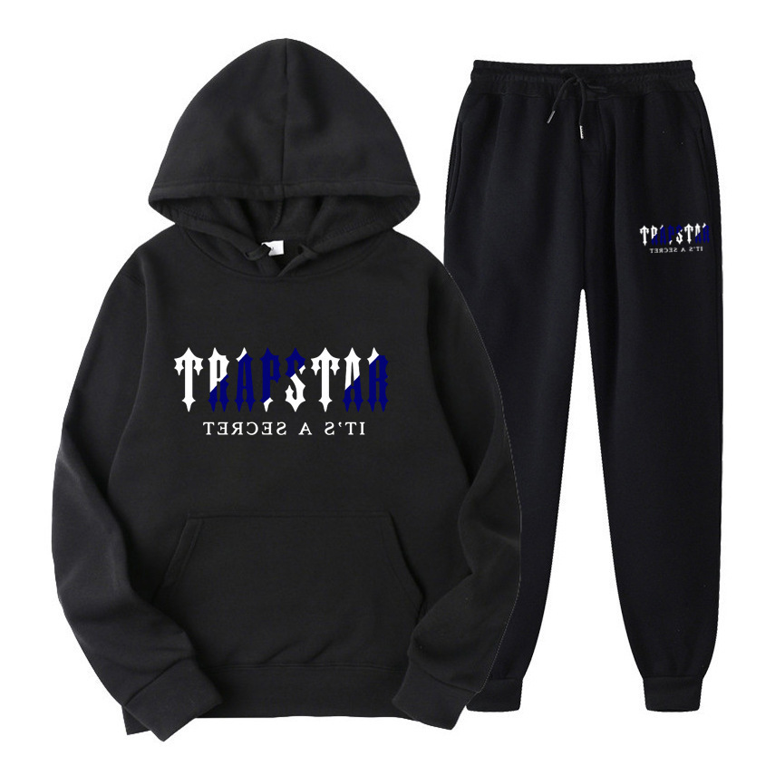 국경을 넘는 유럽과 미국의 TRAPSTAR 편지 인쇄 남성과 여성의 스포츠웨어 양털 투피스 루즈 후드 스웨트 셔츠 세트스토어 가기