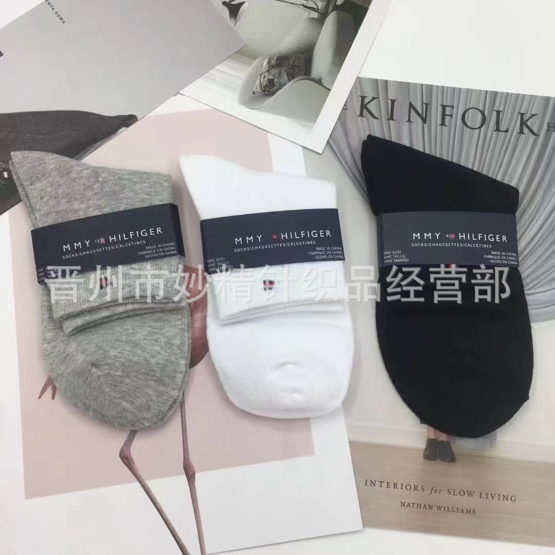 사계절 대외 무역 토미 양말 남녀 커플 양말 통기성 땀 흡수 흑백 비즈니스 캐주얼 코튼 양말스토어 가기