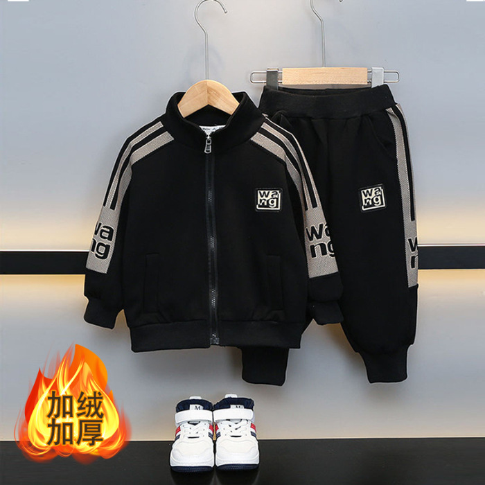소년 기모 두꺼운 카디건 탑 운동복 투피스 가을 및 겨울 새로운 올 매치 서양식 스포츠 캐주얼 바지 세트스토어 가기