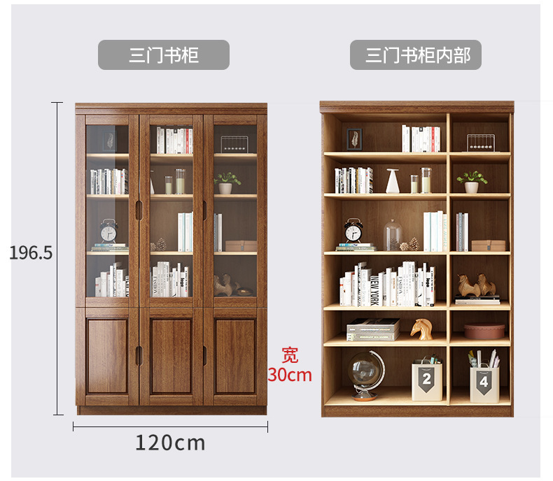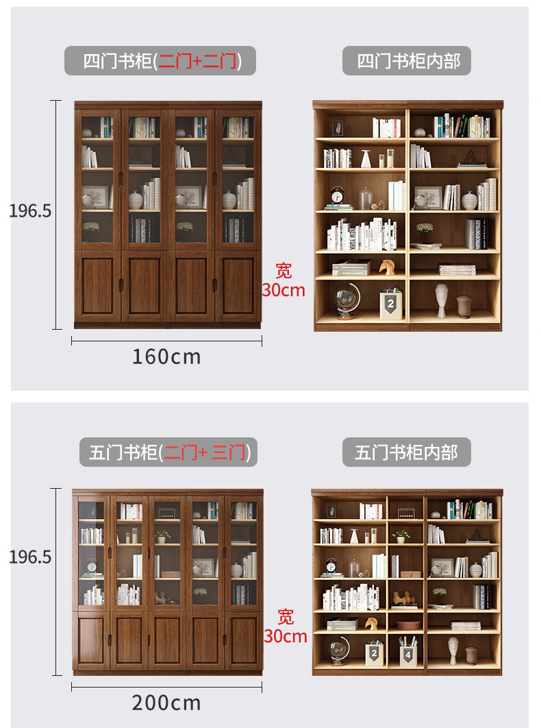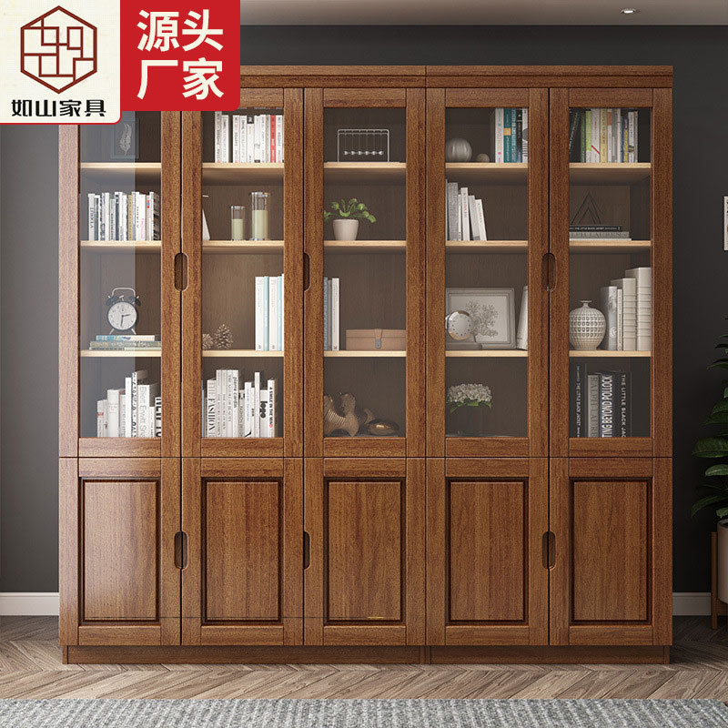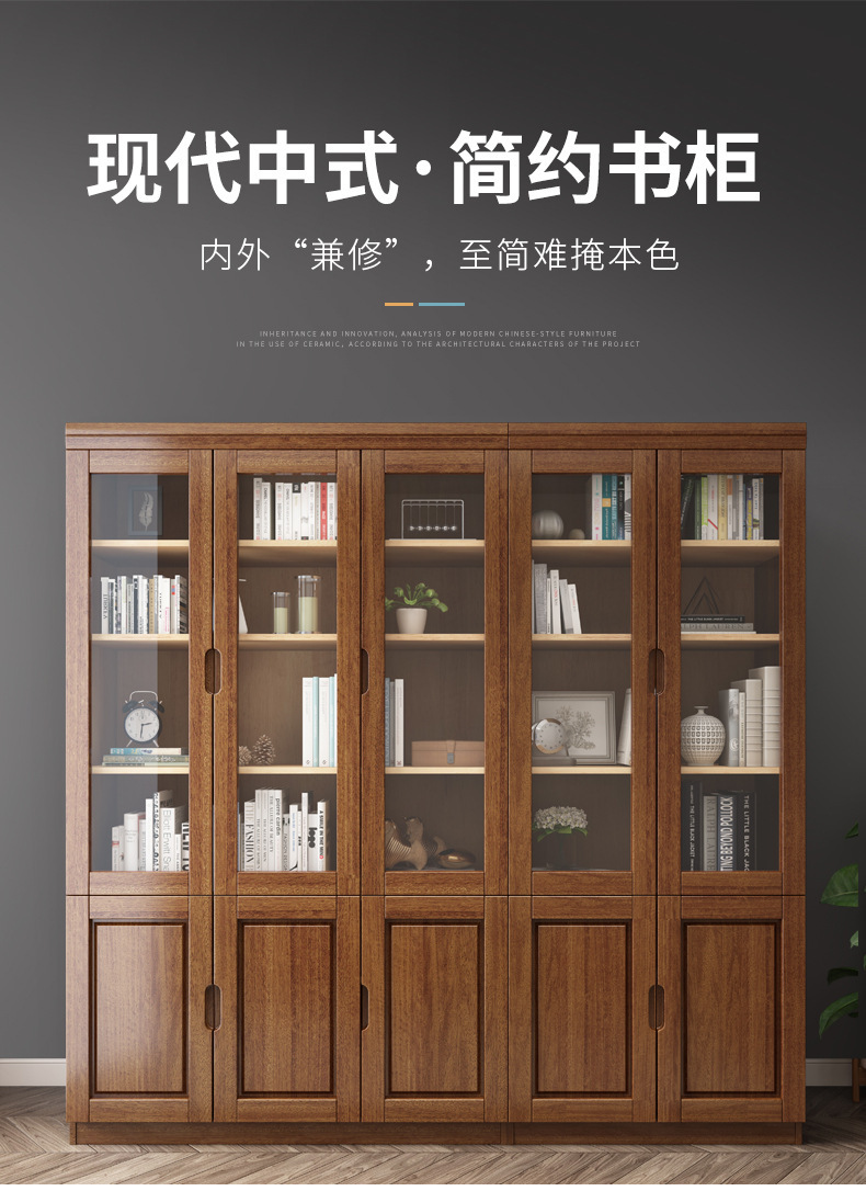 새로운 중국 스타일의 단단한 책장 바닥 연구 2 3 4 5 6 문 조합 사물함 유리 문 책장 파일 캐비닛스토어 가기