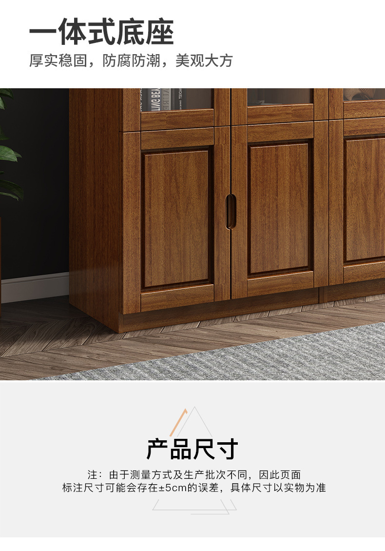 새로운 중국 스타일의 단단한 책장 바닥 연구 2 3 4 5 6 문 조합 사물함 유리 문 책장 파일 캐비닛