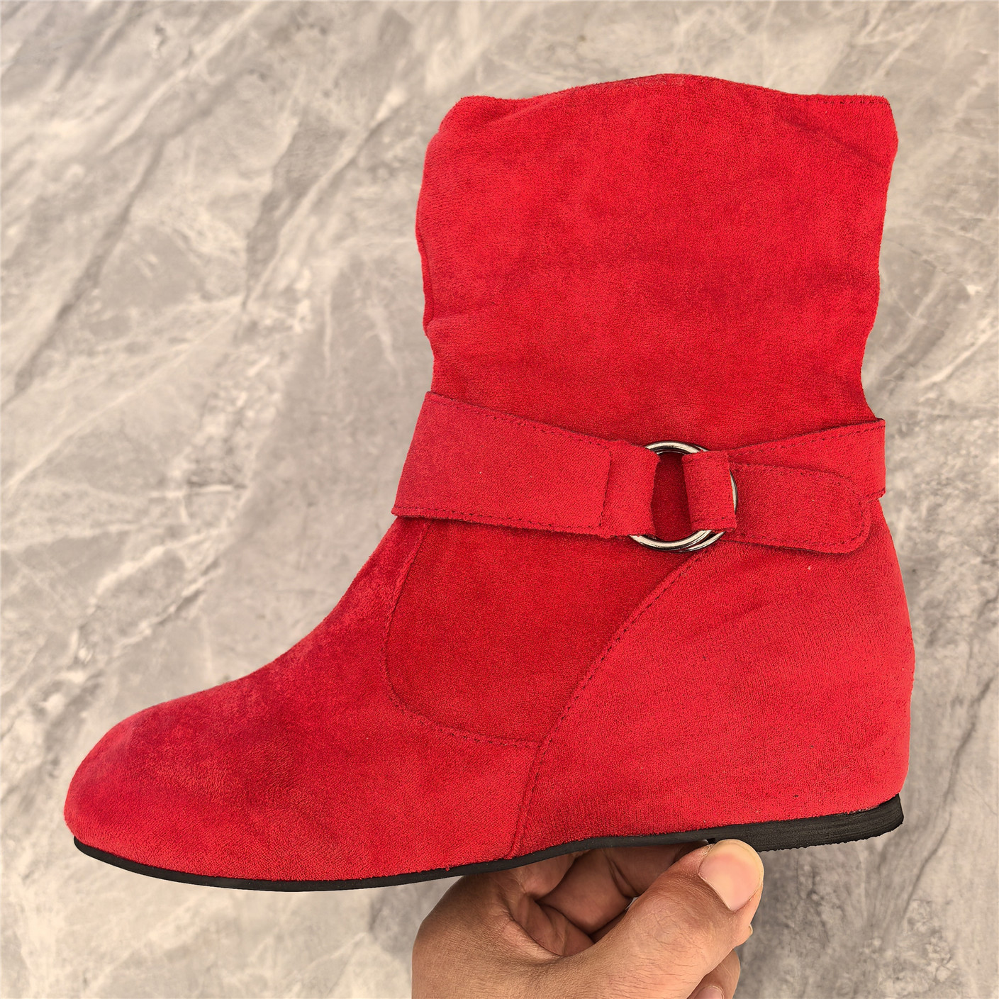 2024 뉴 마틴 부츠 패션 플러스 사이즈 스웨이드 플랫 벨트 버클 여성 짧은 부츠 소매 라운드 토 여성 부츠 도매