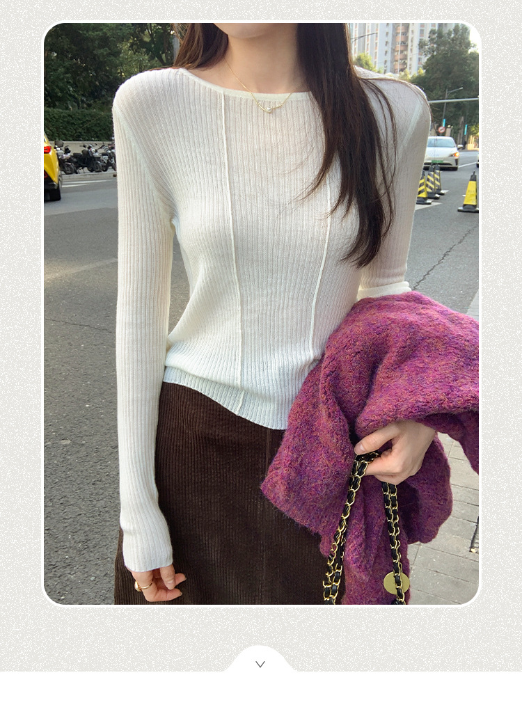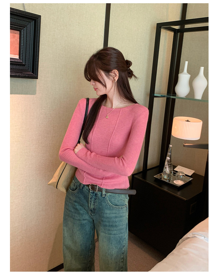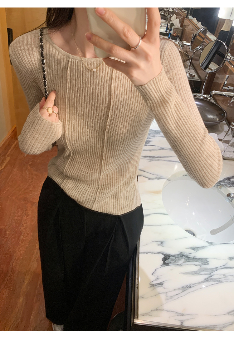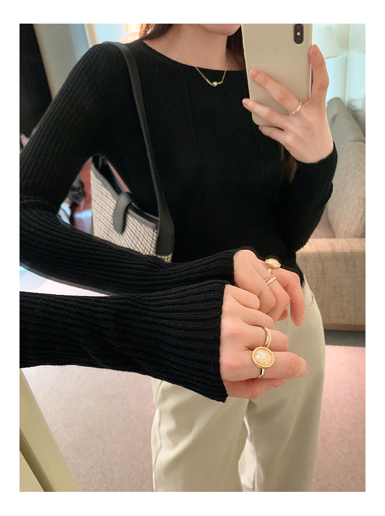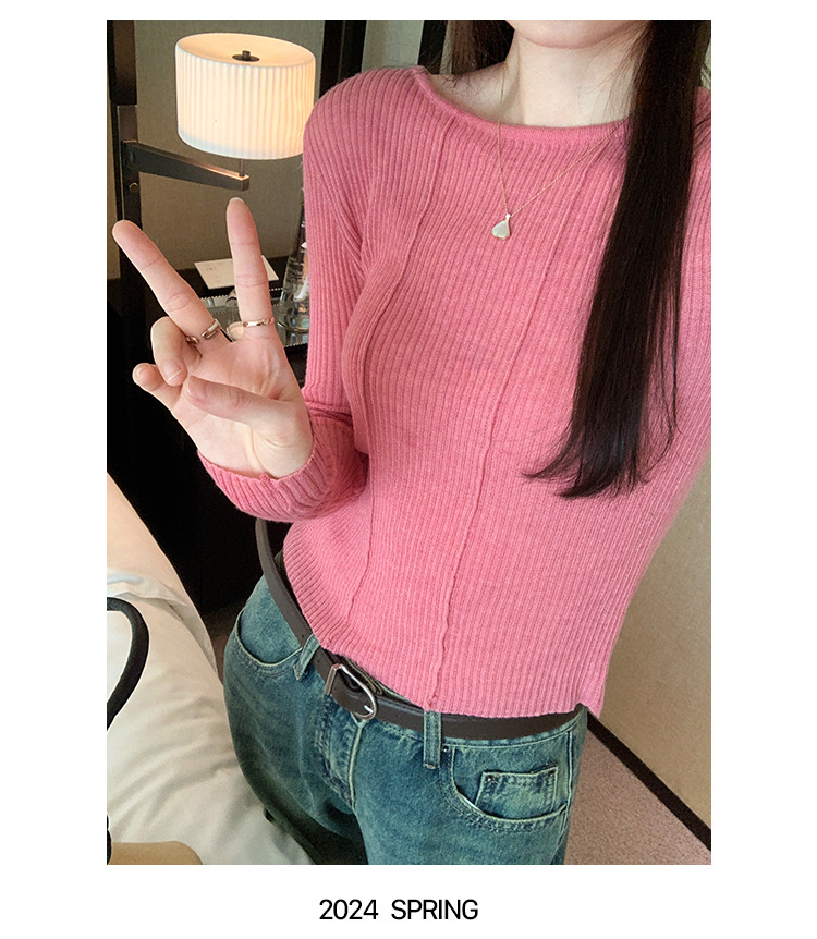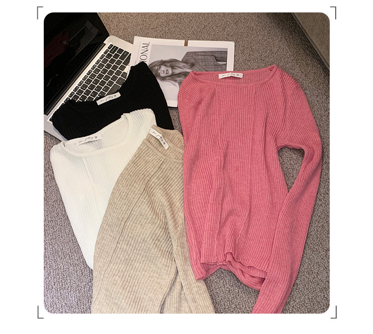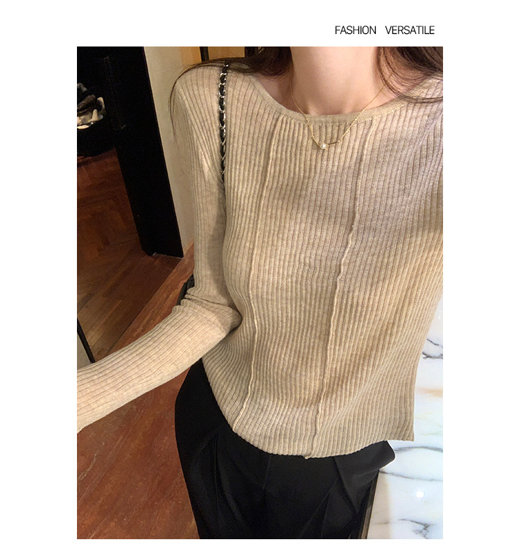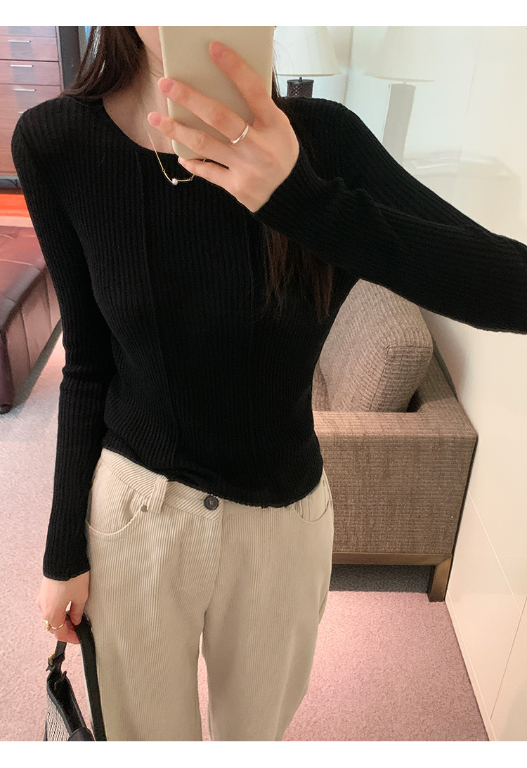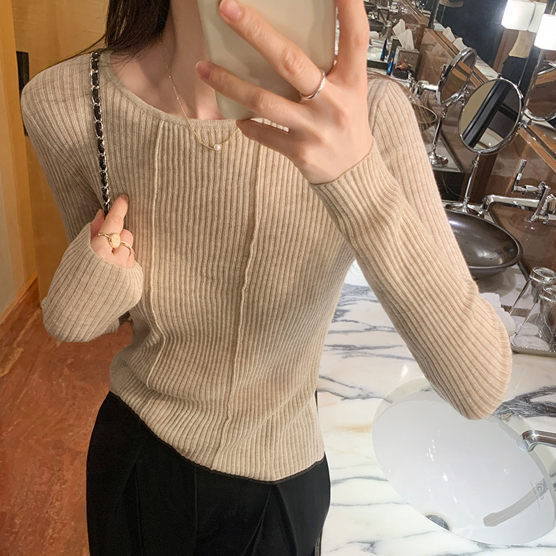 단색 둥근 목 긴팔 스웨터 여성용 봄 새로운 슬림 핏 슬리밍 내복 서양식 얇은 약간 투명한 모직 탑