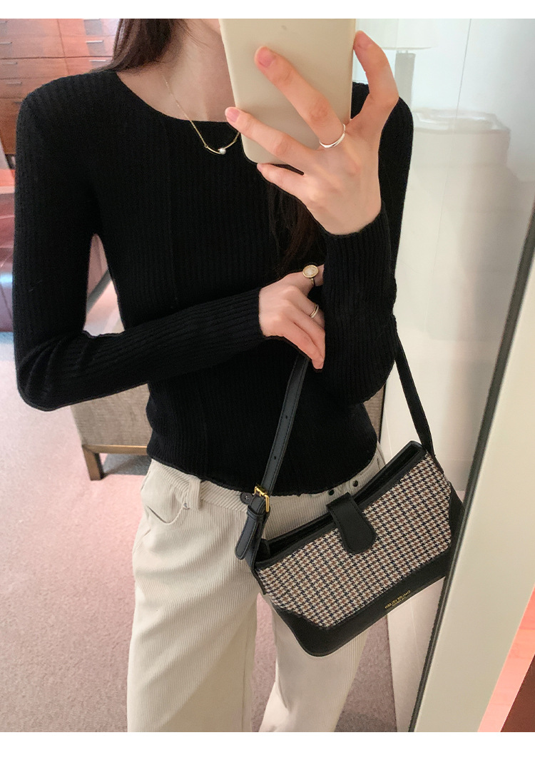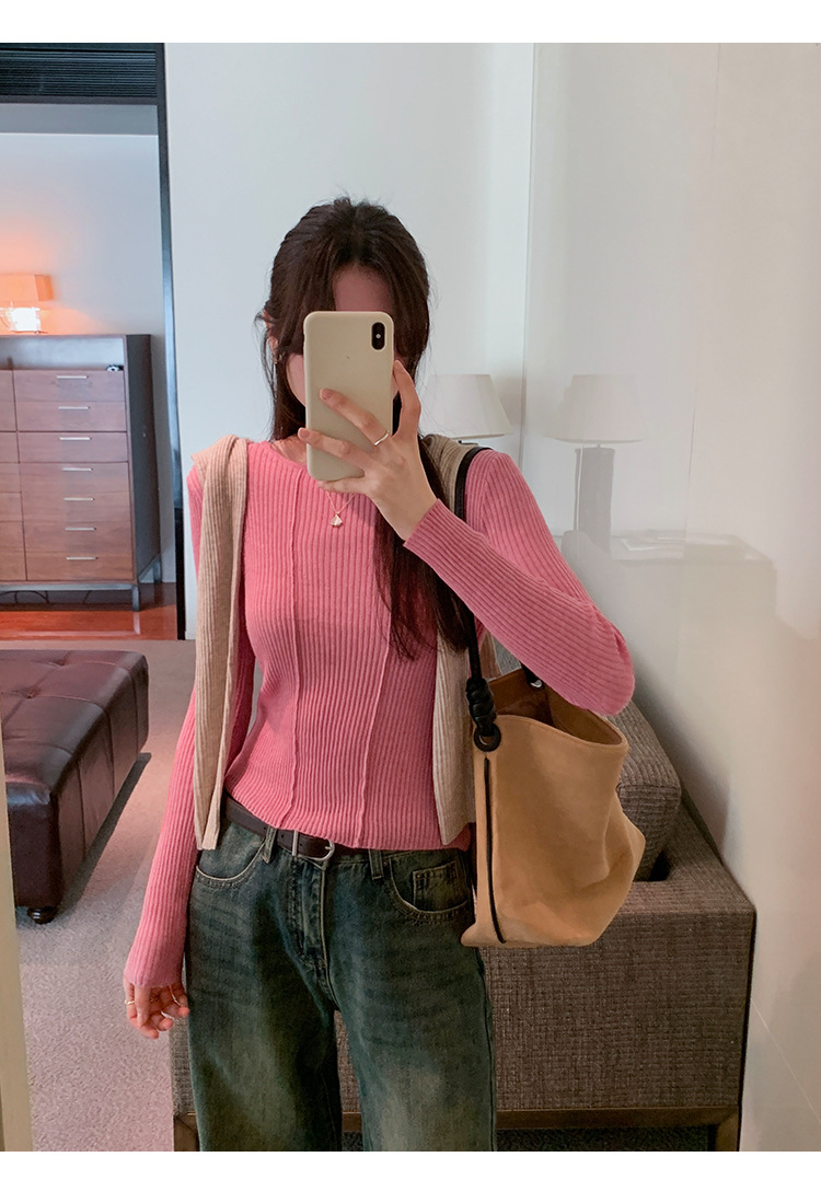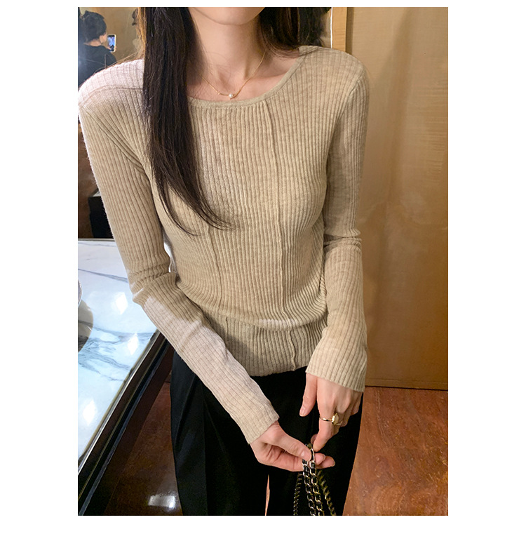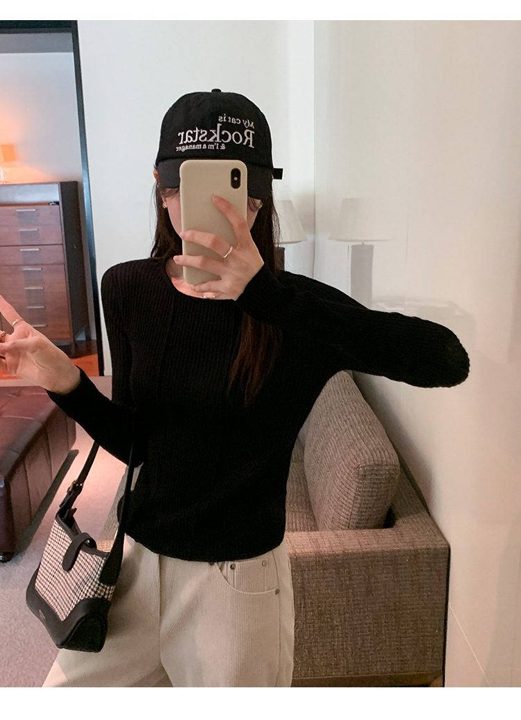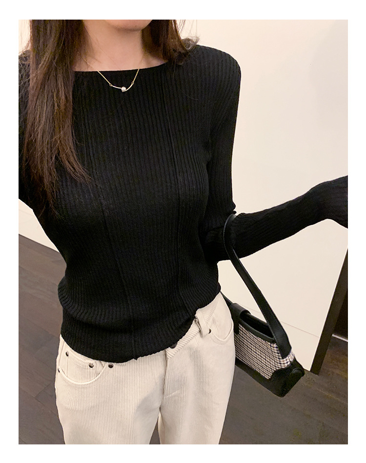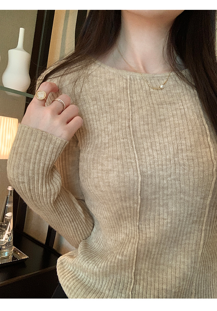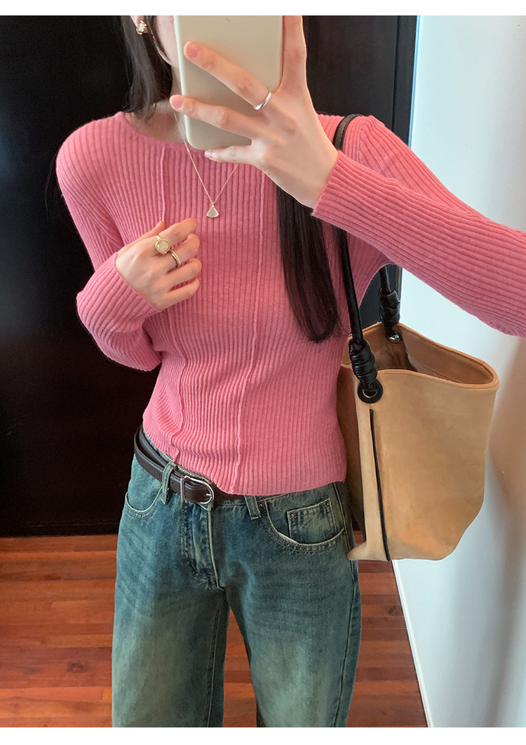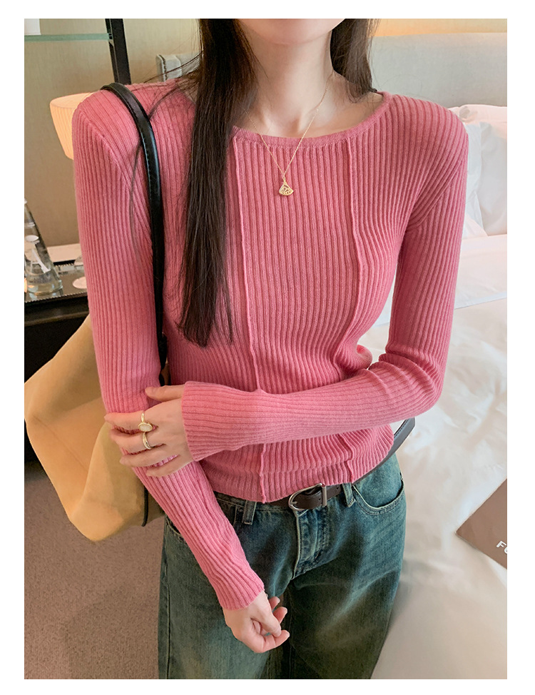단색 둥근 목 긴팔 스웨터 여성용 봄 새로운 슬림 핏 슬리밍 내복 서양식 얇은 약간 투명한 모직 탑