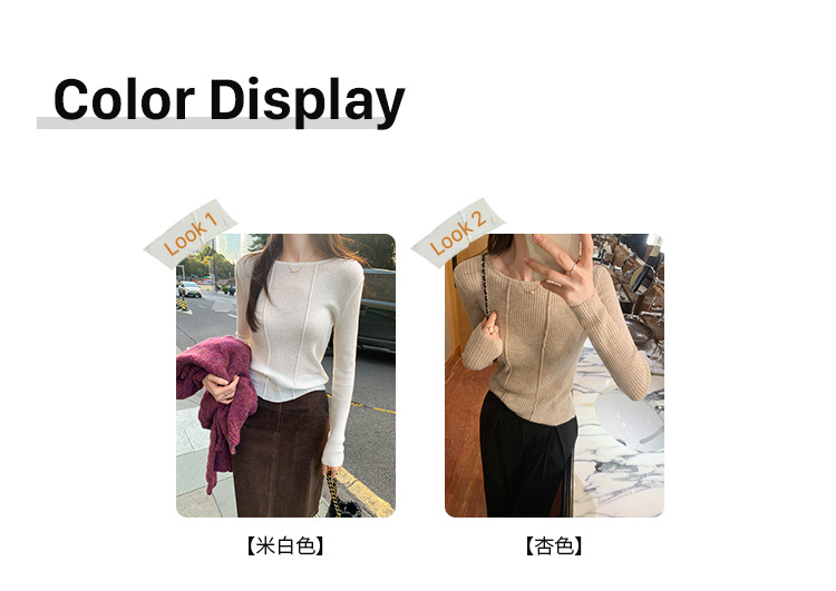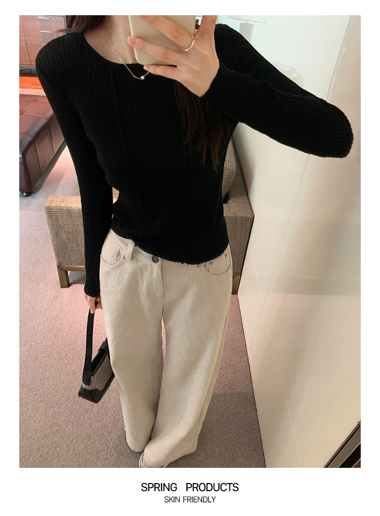 단색 둥근 목 긴팔 스웨터 여성용 봄 새로운 슬림 핏 슬리밍 내복 서양식 얇은 약간 투명한 모직 탑스토어 가기