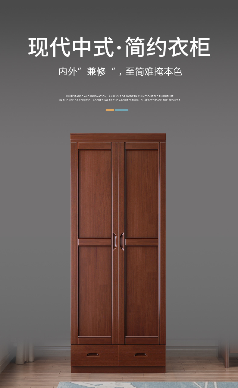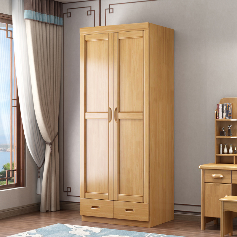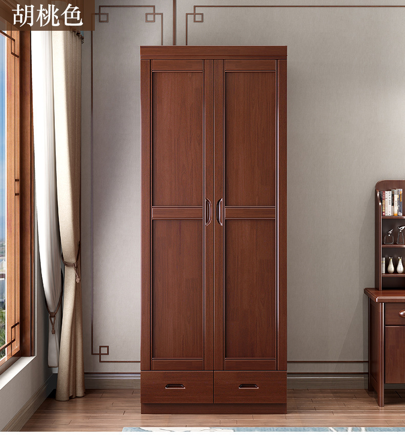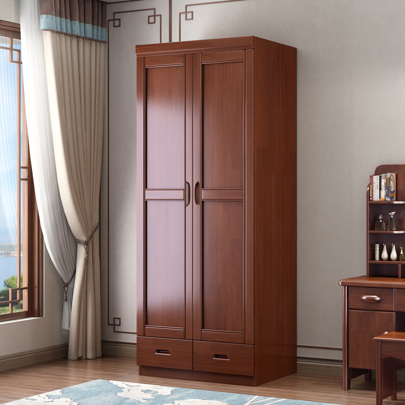 새로운 중국 스타일의 단단한 나무 옷장 침실 평면 문 두 문 옷 캐비닛 작은 아파트 집 휴대품 보관함