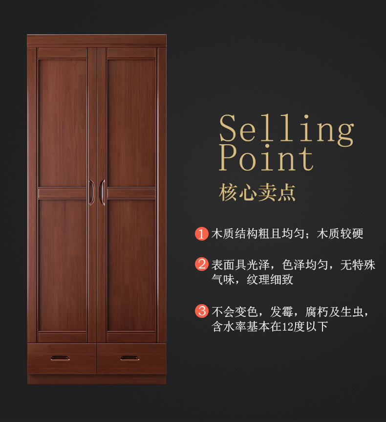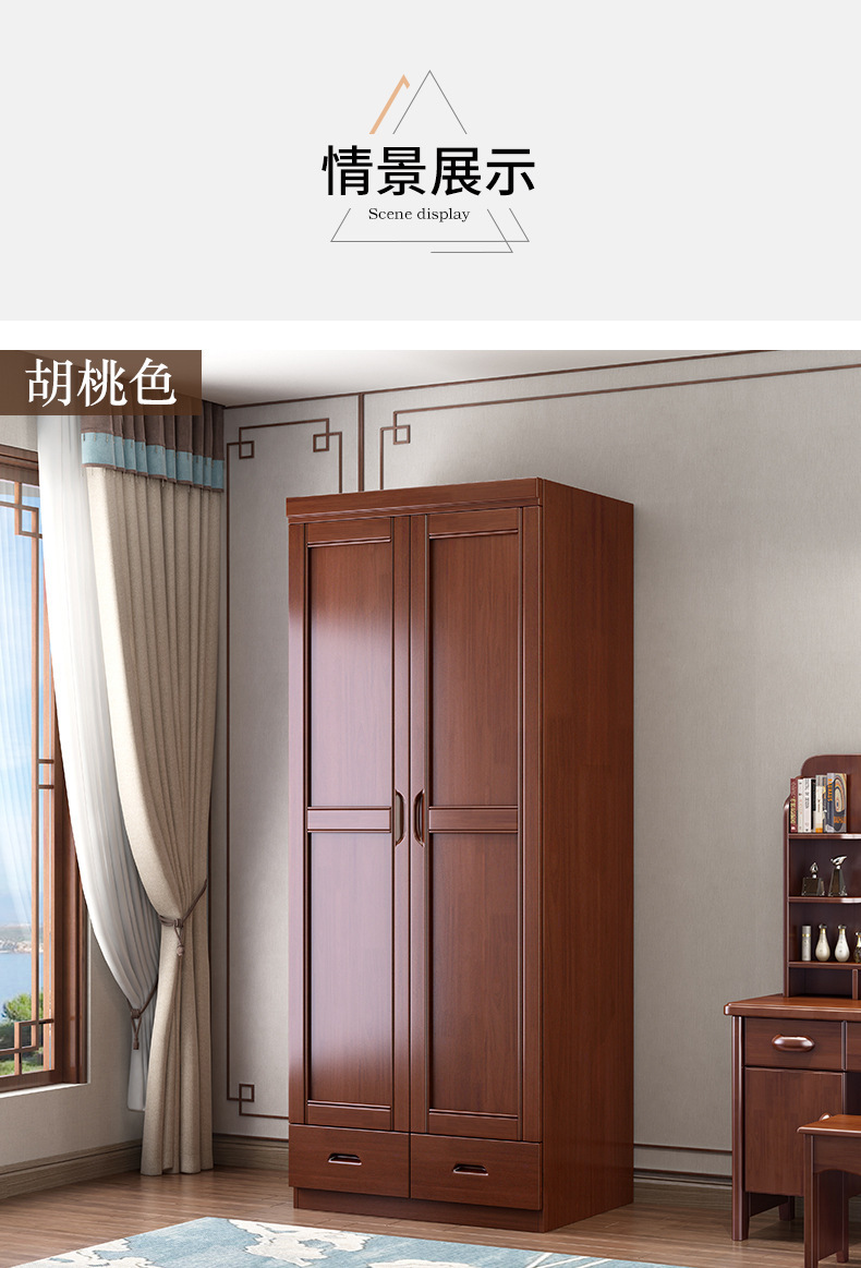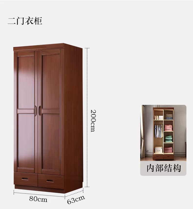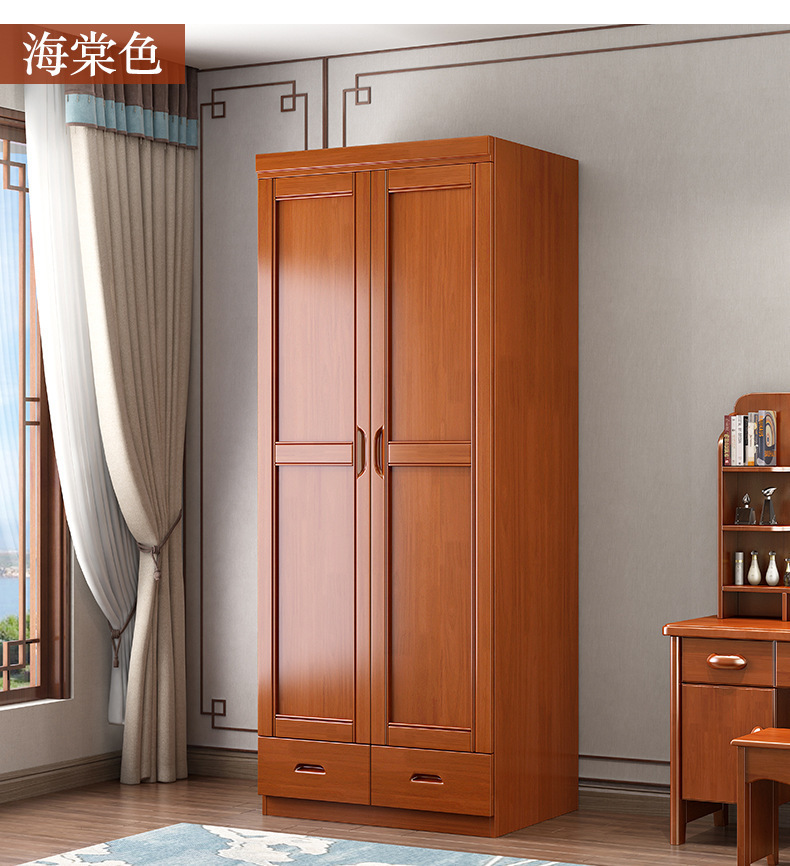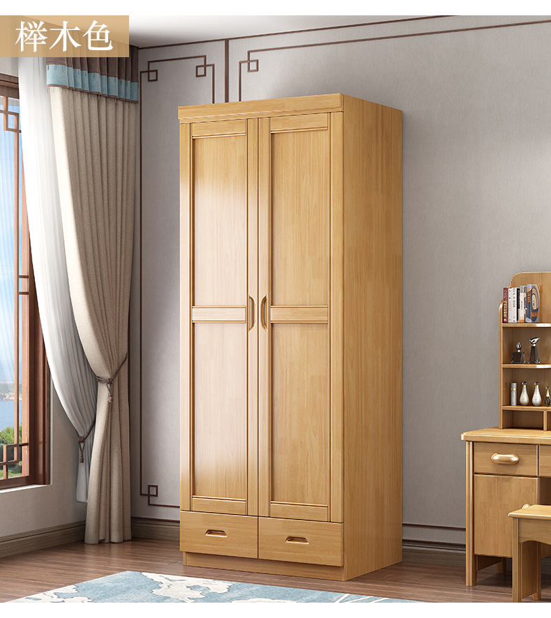 새로운 중국 스타일의 단단한 나무 옷장 침실 평면 문 두 문 옷 캐비닛 작은 아파트 집 휴대품 보관함