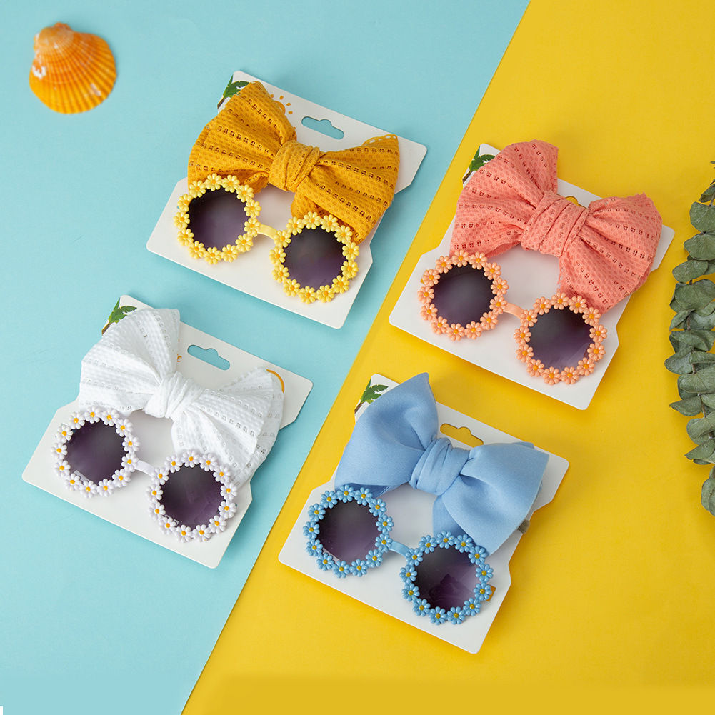 어린이 선글라스 머리띠 조합 세트 아기 데이지 봄과 여름 선글라스 중공 나비 헤어 밴드 투피스 세트스토어 가기