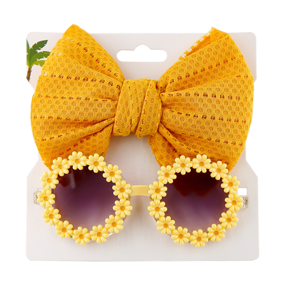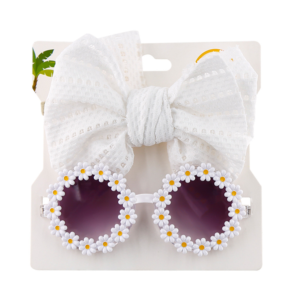 어린이 선글라스 머리띠 조합 세트 아기 데이지 봄과 여름 선글라스 중공 나비 헤어 밴드 투피스 세트