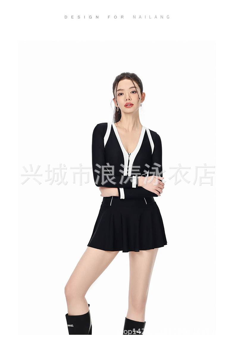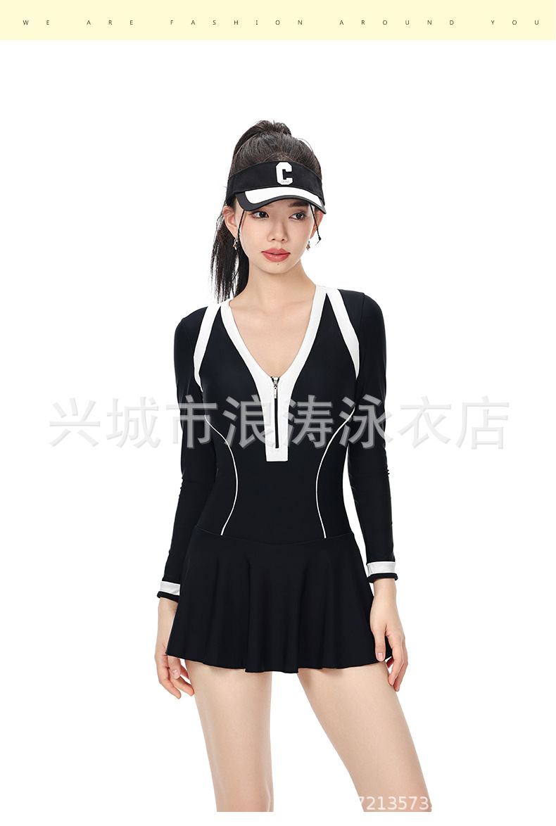새로운 수영복 청소년 스포츠 스타일 대형 긴팔 스커트 원피스 섹시 보수적 슬리밍 온천 소녀 수영복스토어 가기