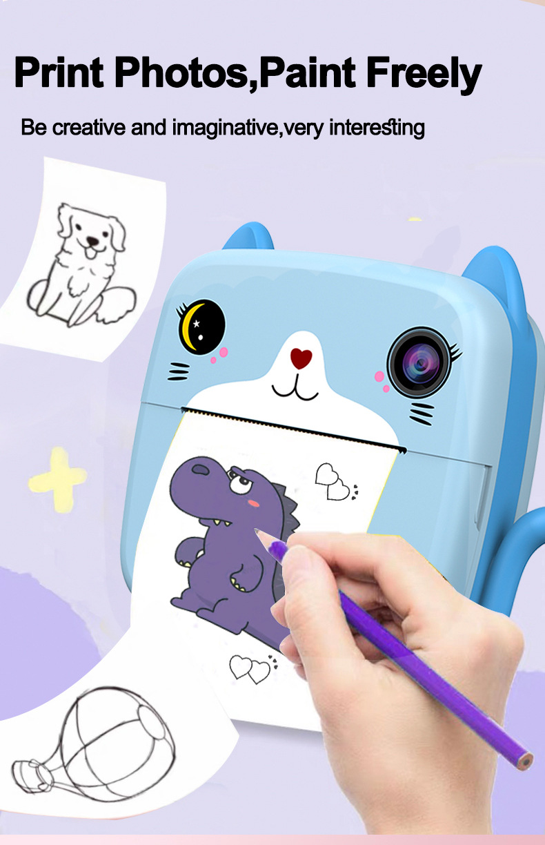 새로운 폴라로이드 어린이 디지털 카메라 인쇄 HD 카메라 귀여운 만화 미니 사진 프린터