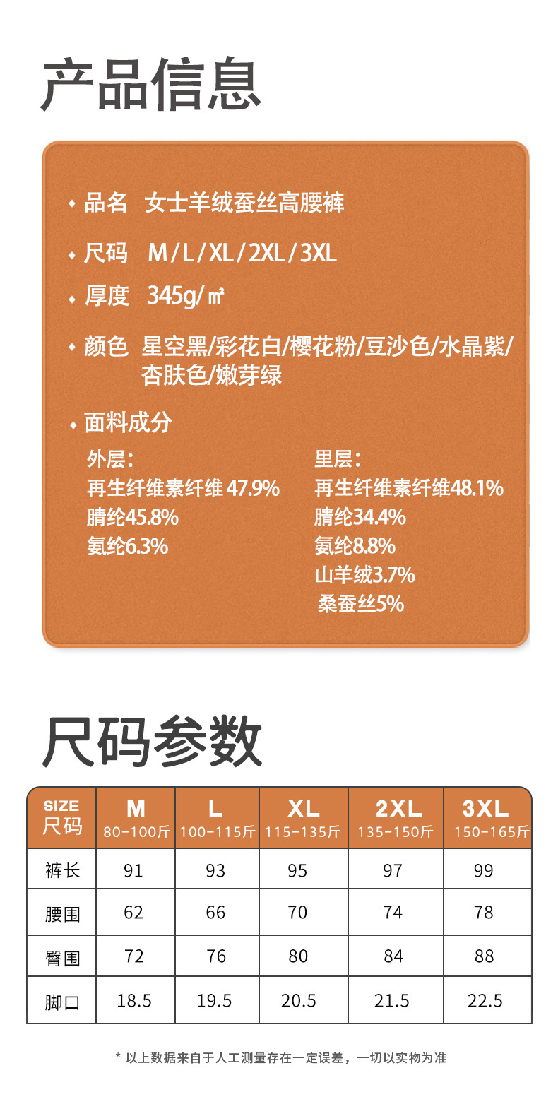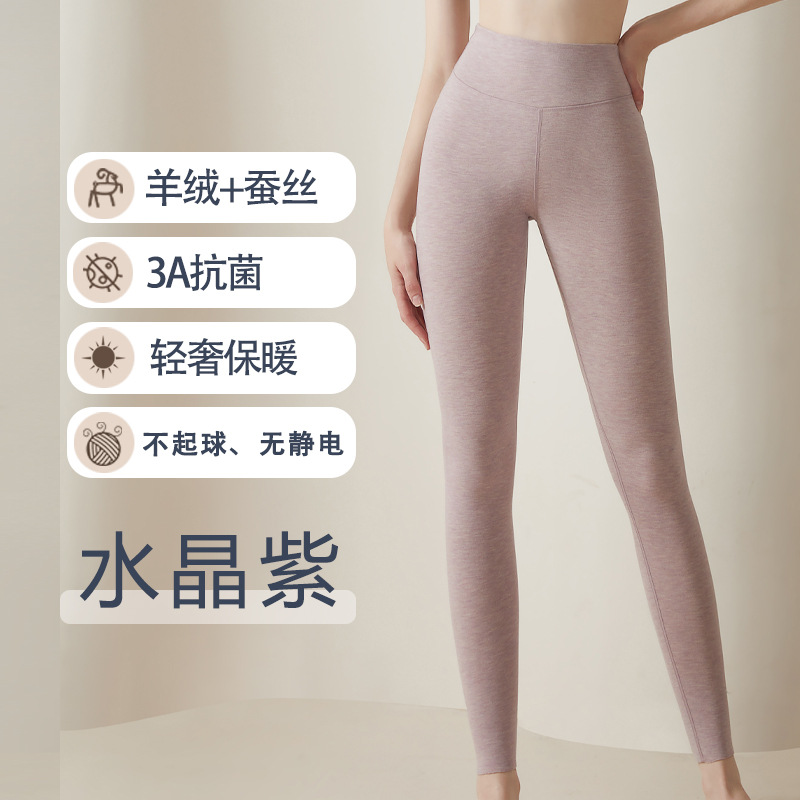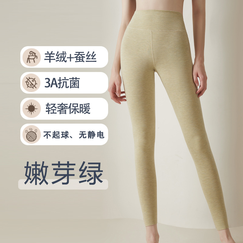 실크 캐시미어 하이웨이스트 팬츠 가을 겨울 독일산 기모 내복 여성용 보온 레깅스 기모 두꺼운 무봉제 방한 초두꺼운