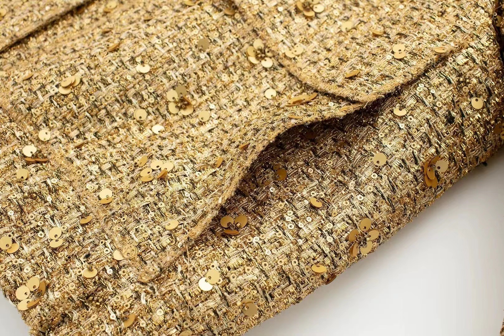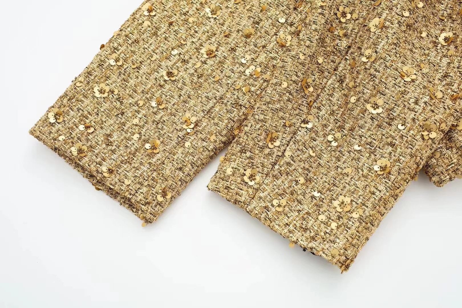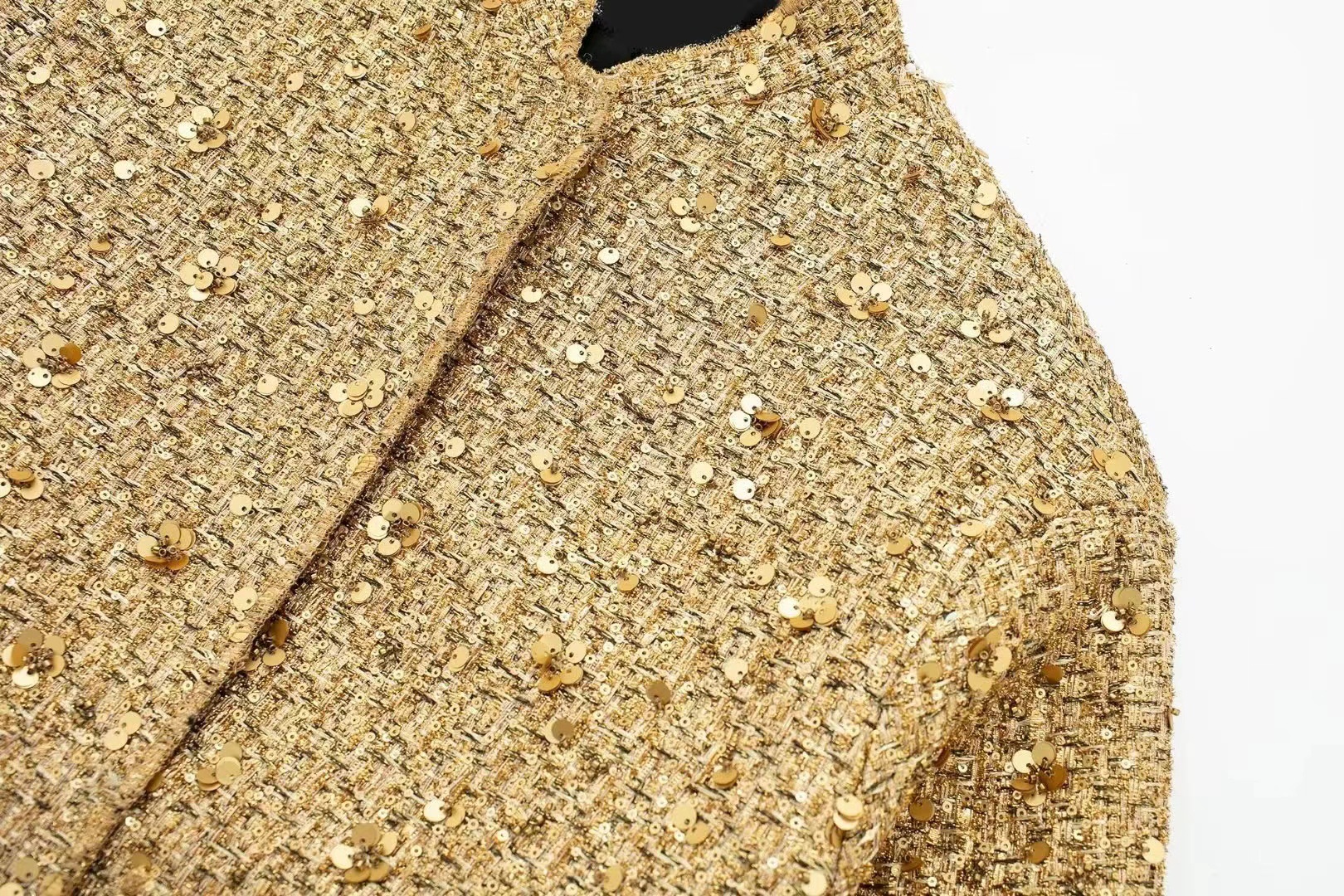 가을 신상 유럽 및 미국 스타일 여성 스트리트 패션 골드 스팽글 장식 재킷 포켓 코트 트렌디 브랜드스토어 가기