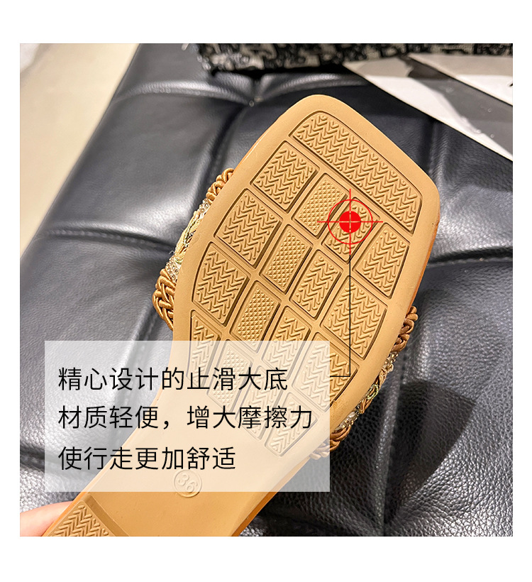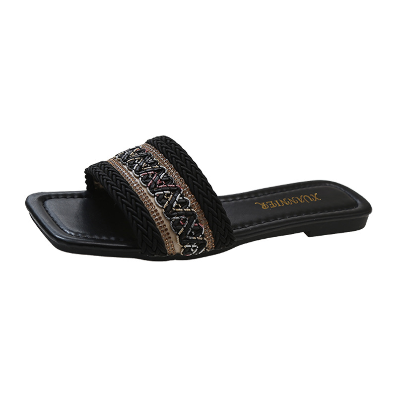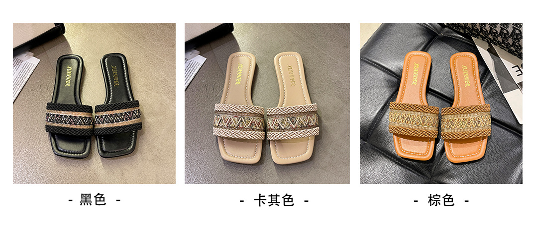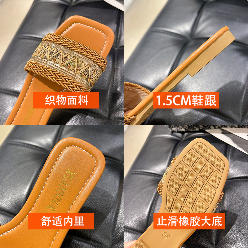 2024 플러스 사이즈 대외 무역 새로운 샌들 여성 여름 야외 패션 짠 사각형 발가락 플랫 비치 슬리퍼