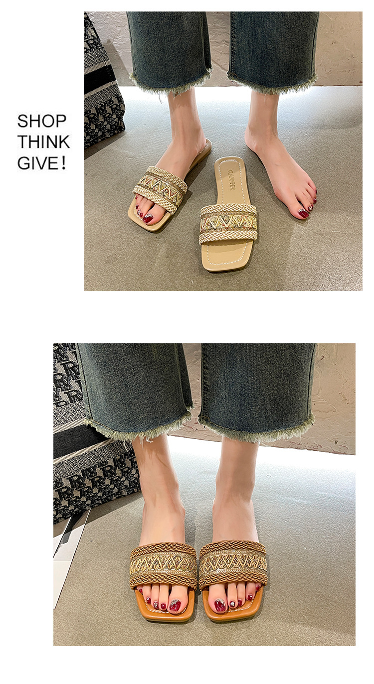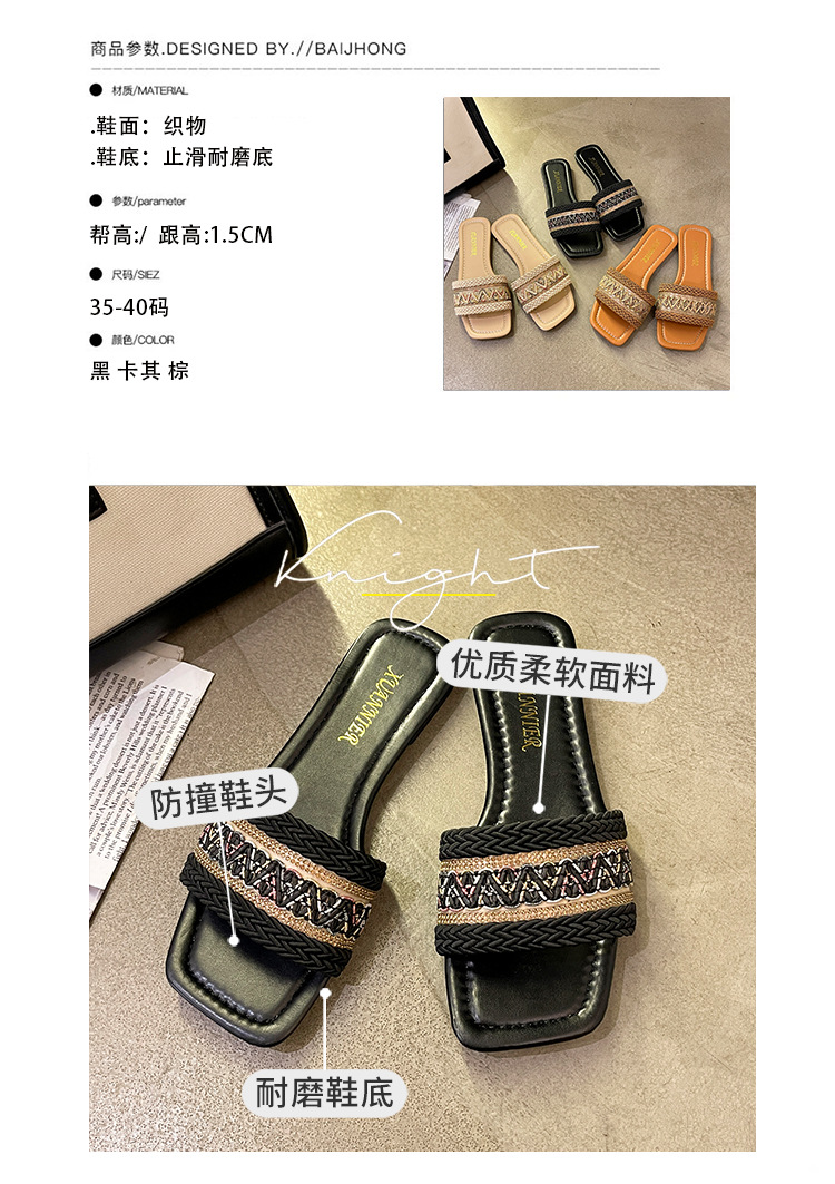 2024 플러스 사이즈 대외 무역 새로운 샌들 여성 여름 야외 패션 짠 사각형 발가락 플랫 비치 슬리퍼스토어 가기