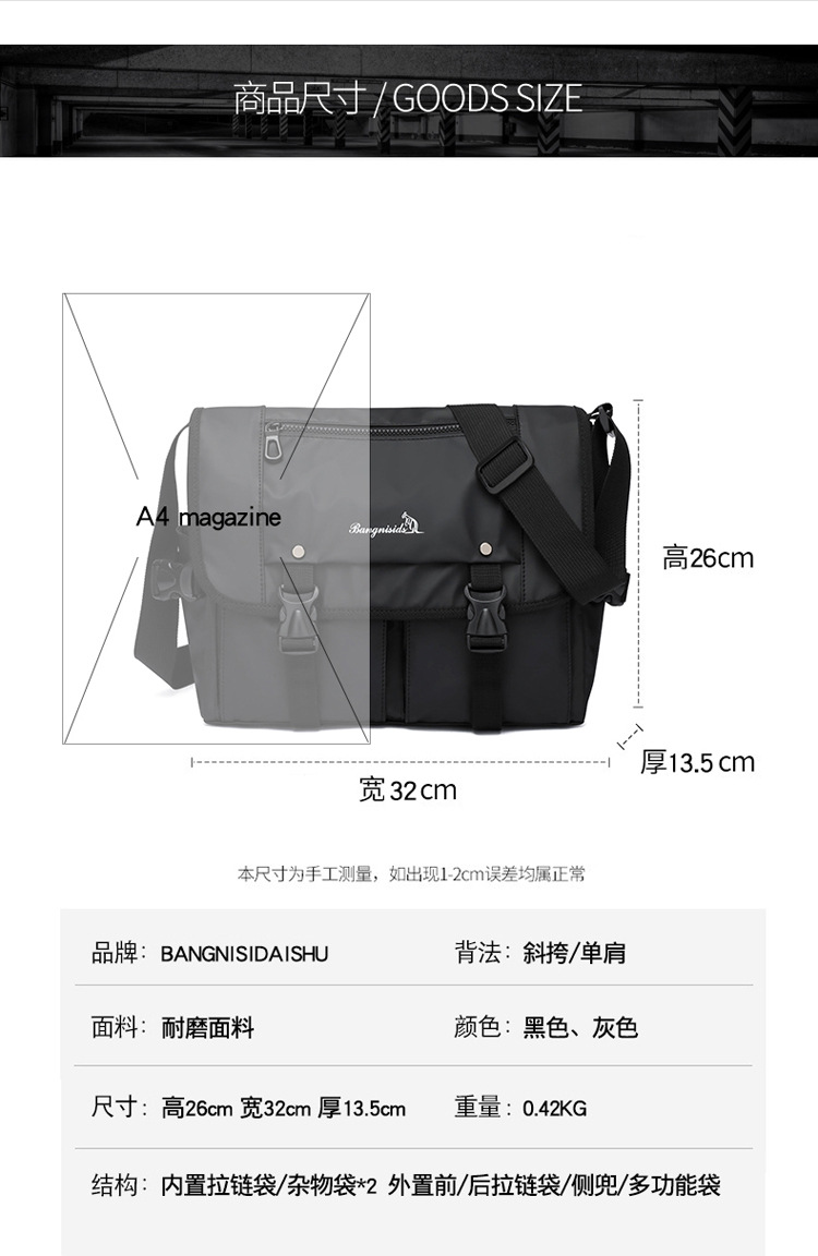 Tiktok 핫 세일 숄더백 남성용 캐주얼 새로운 방수 어깨 메신저 가방 패션 간단한 럭셔리 메신저 레트로 남성용 가방스토어 가기