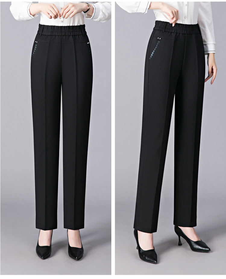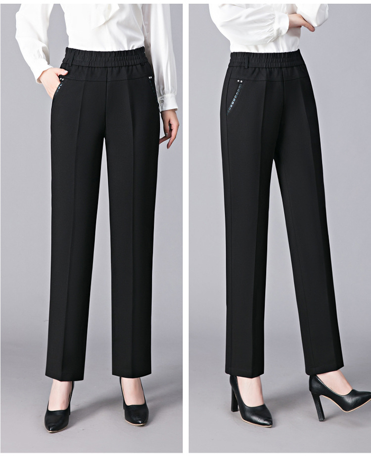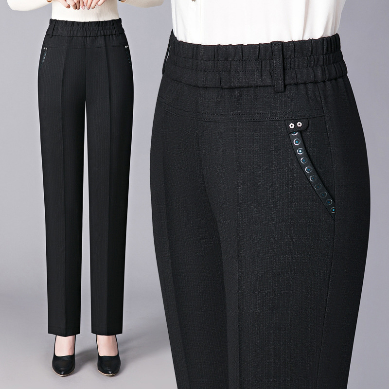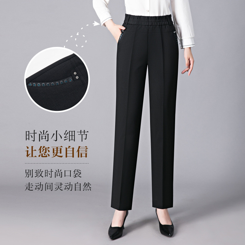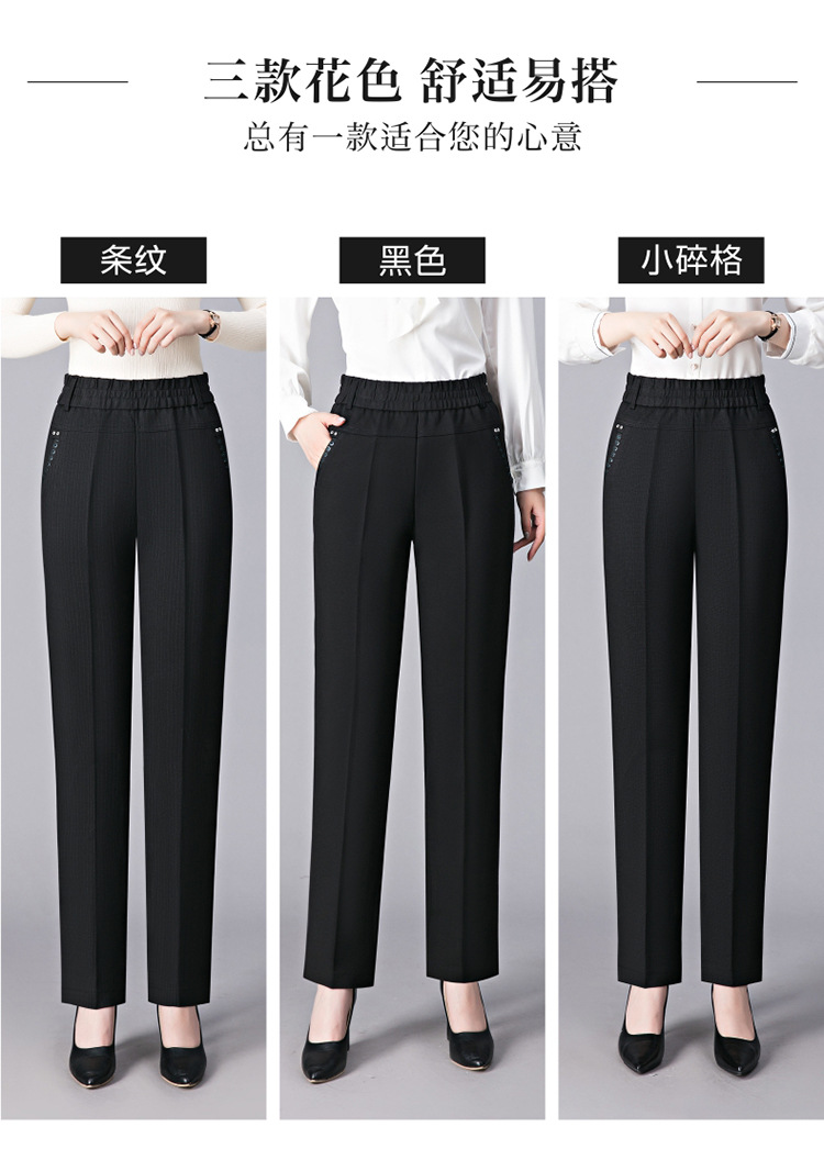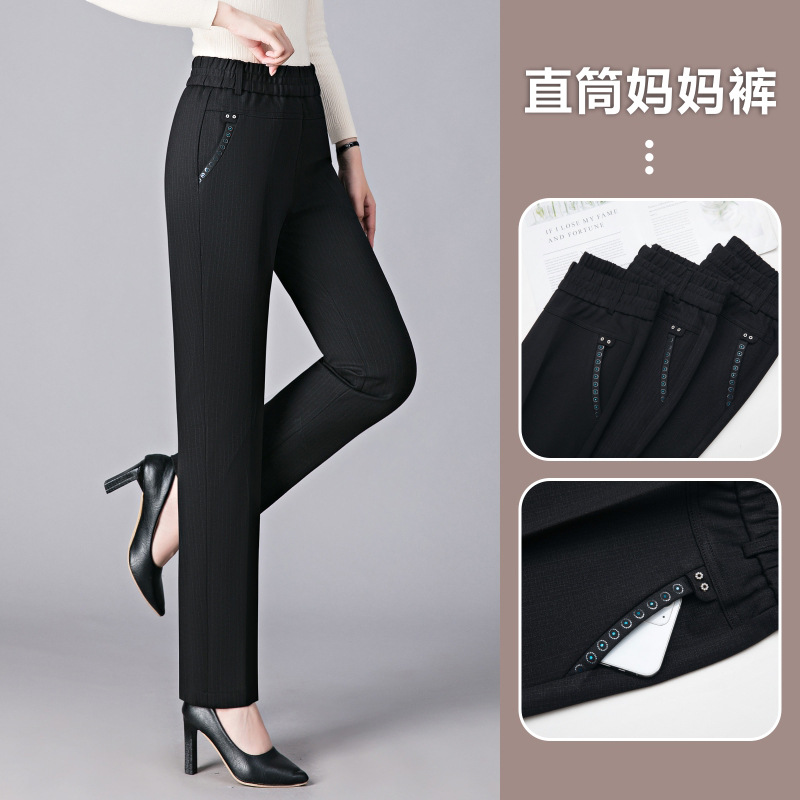 중년 및 노인 엄마 바지 여성의 높은 허리 스트레이트 바지 봄과 가을 새로운 할머니 바지 탄성 허리 느슨한 슬리밍 캐주얼 바지