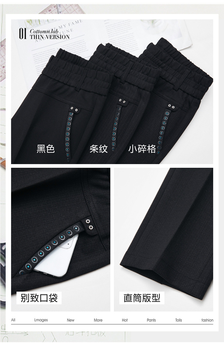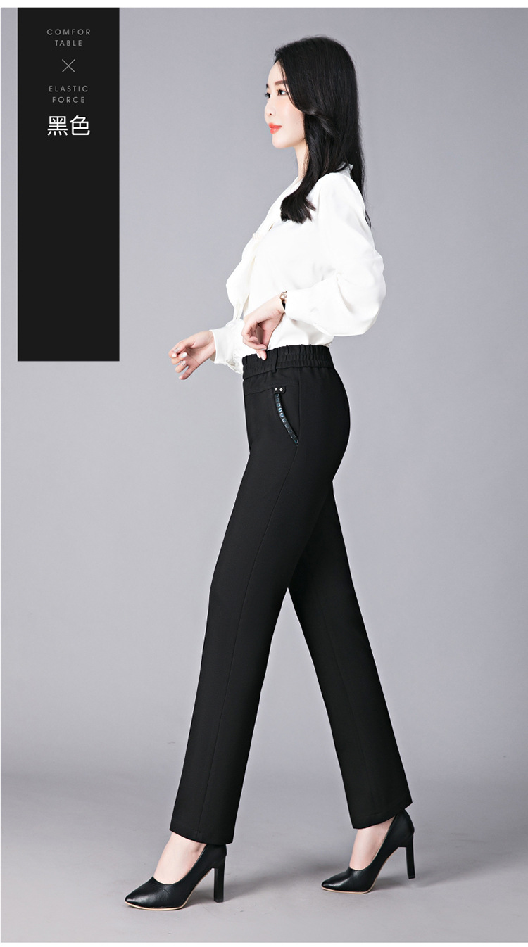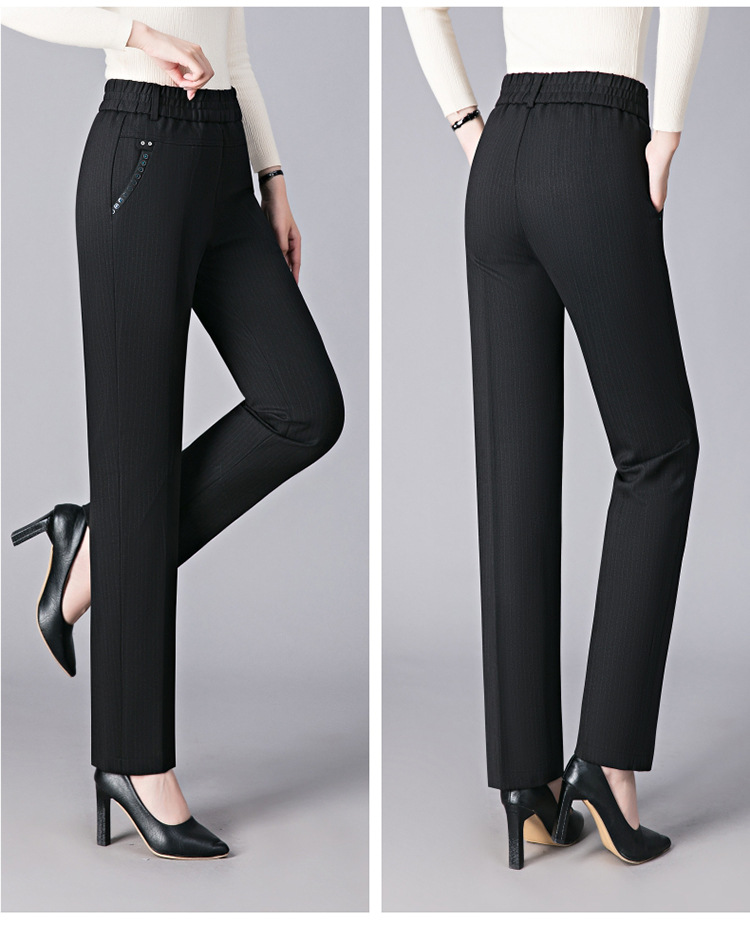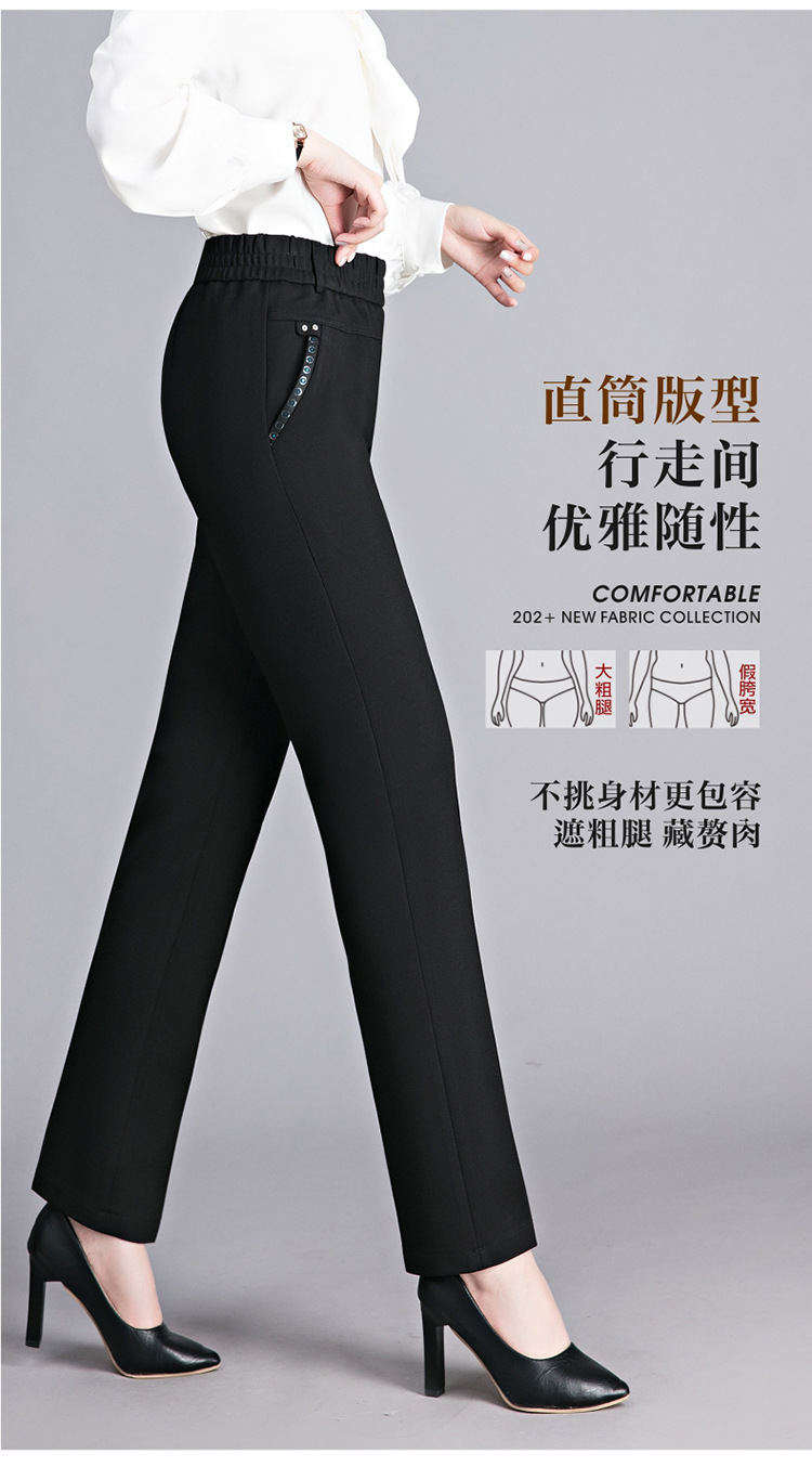 중년 및 노인 엄마 바지 여성의 높은 허리 스트레이트 바지 봄과 가을 새로운 할머니 바지 탄성 허리 느슨한 슬리밍 캐주얼 바지