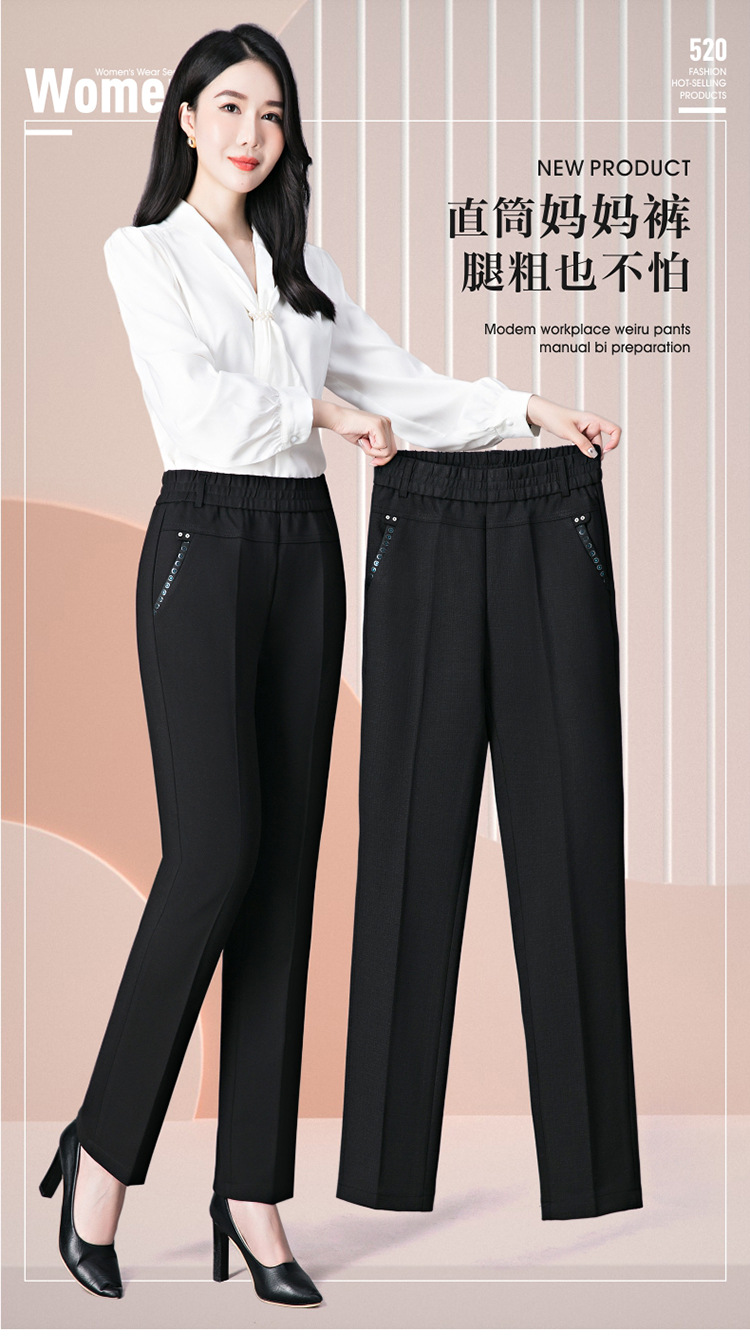 중년 및 노인 엄마 바지 여성의 높은 허리 스트레이트 바지 봄과 가을 새로운 할머니 바지 탄성 허리 느슨한 슬리밍 캐주얼 바지스토어 가기