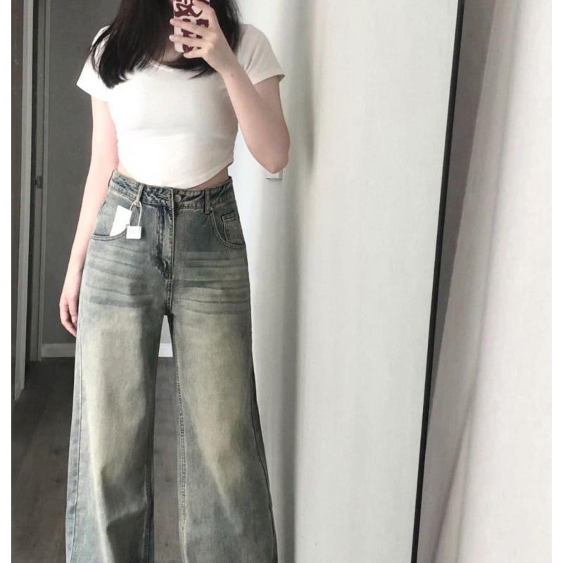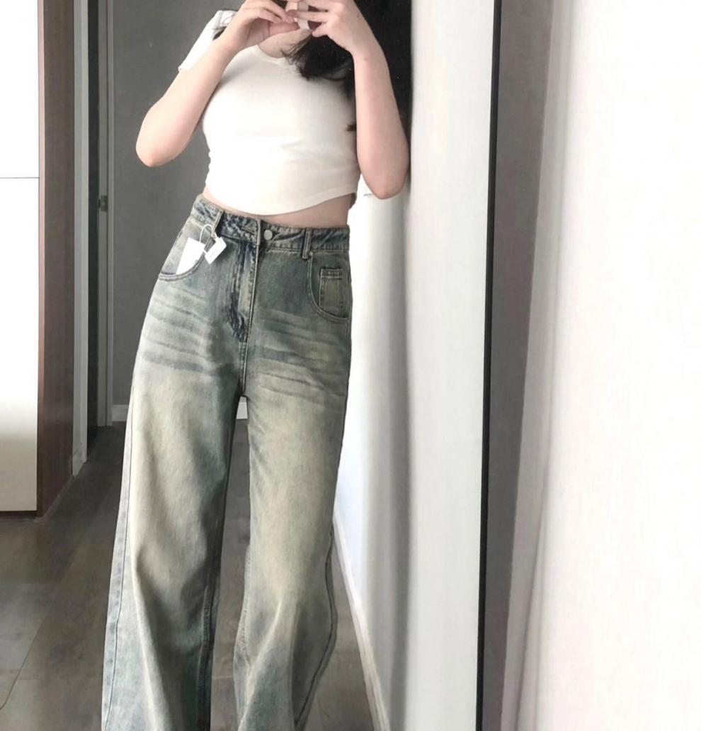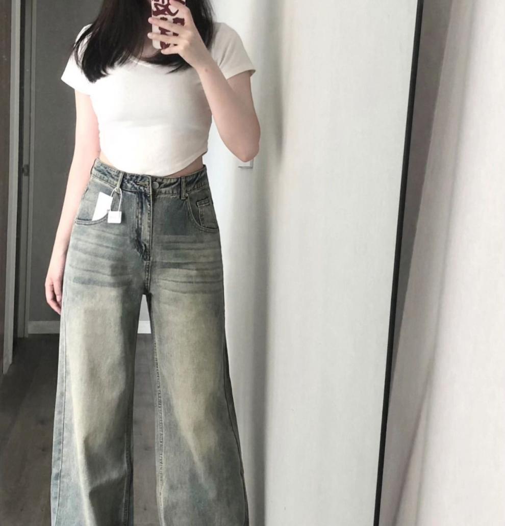 빈티지 정사이즈 레이브 느슨한 스트레이트 청바지 여성의 봄과 여름 새로운 높은 허리 슬리밍 올 매치 와이드 레그 트렌디 팬츠