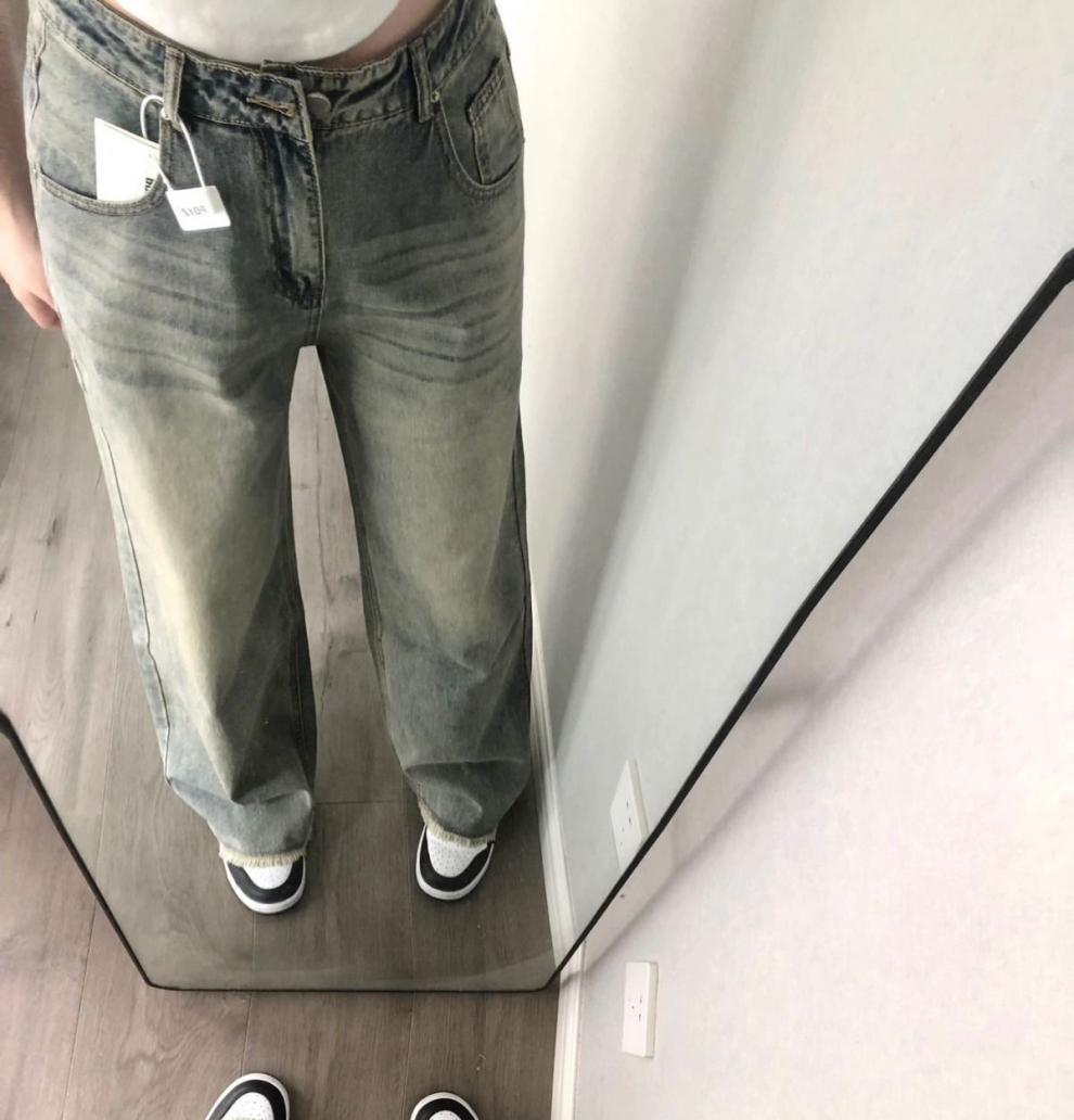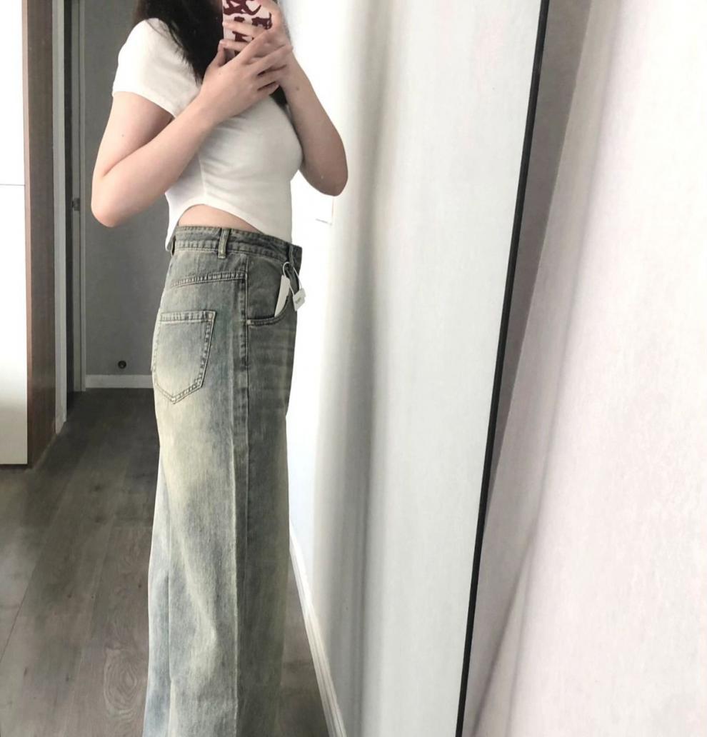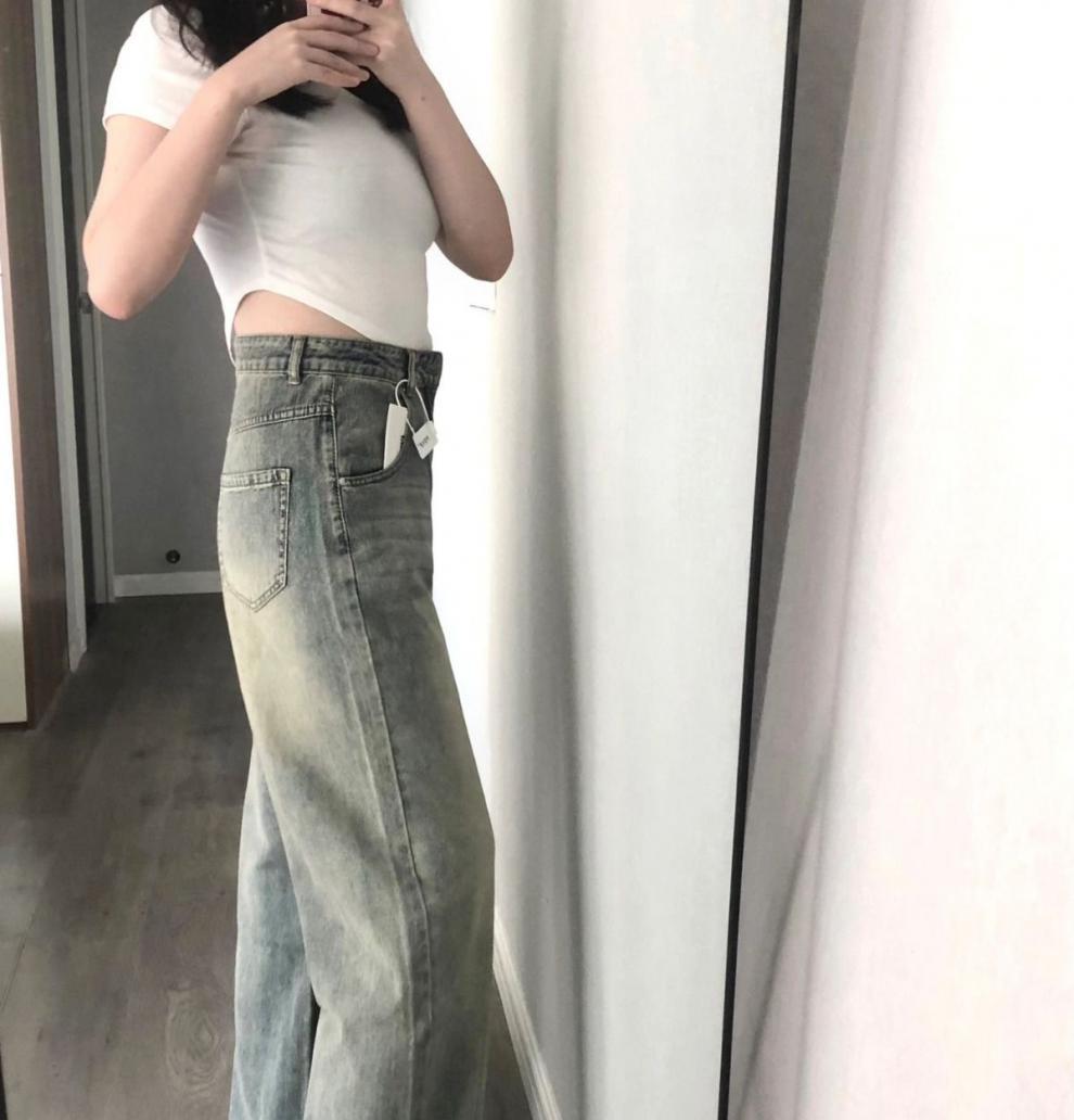 빈티지 정사이즈 레이브 느슨한 스트레이트 청바지 여성의 봄과 여름 새로운 높은 허리 슬리밍 올 매치 와이드 레그 트렌디 팬츠스토어 가기