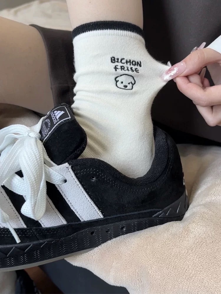 Loulor 치료 귀여운 개 줄무늬 자수 중간 종아리 양말 더미 양말 순면 양말 여성 학생 캐주얼스토어 가기