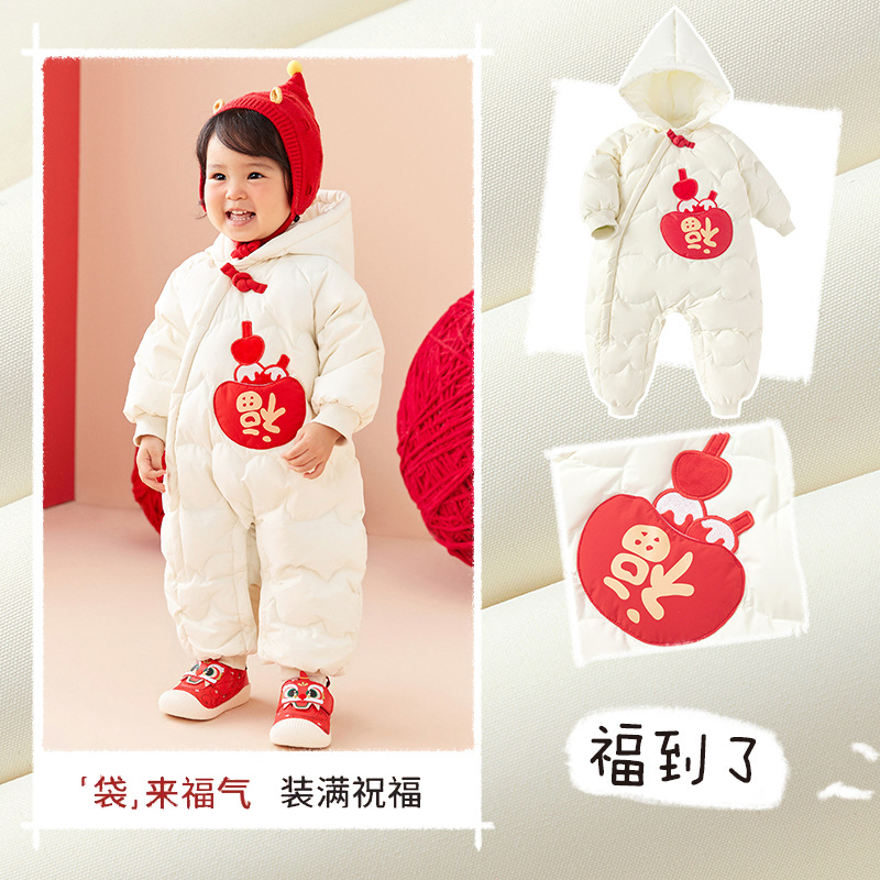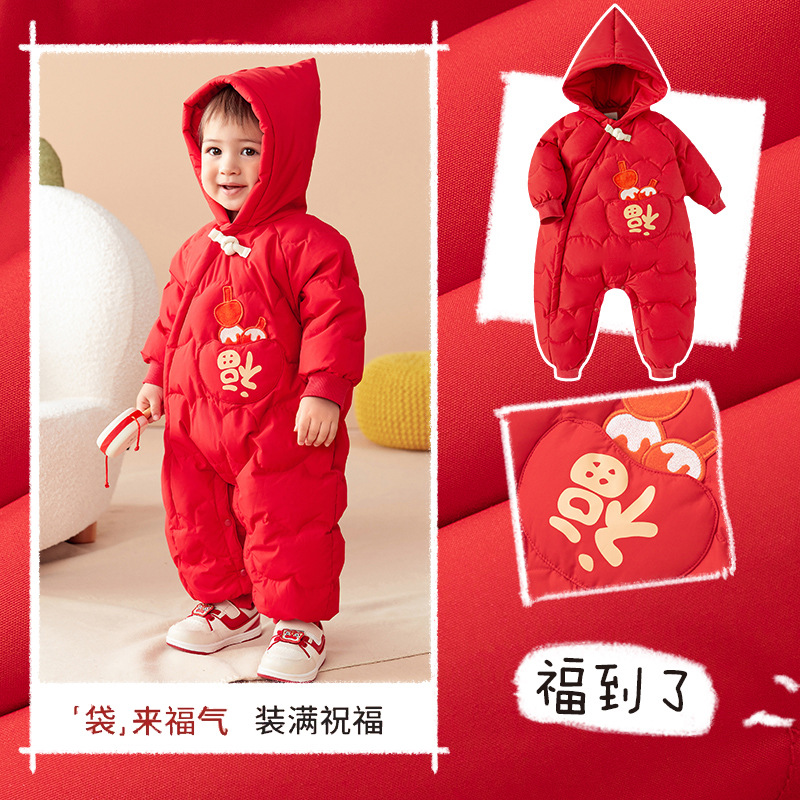 새해 인사말 옷 도매 아동복 아기 겨울 다운 재킷 점프 수트 남녀 아기 서양식 빨간색 겉옷스토어 가기