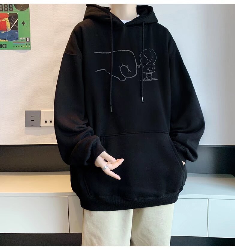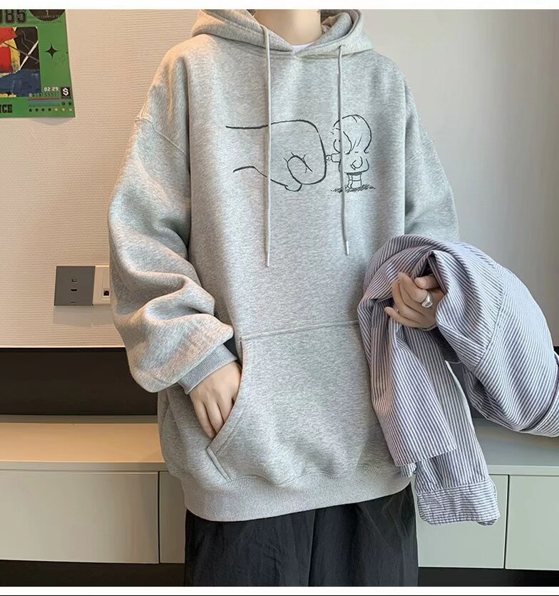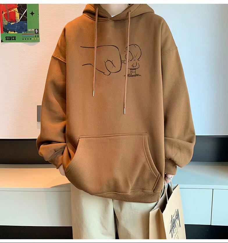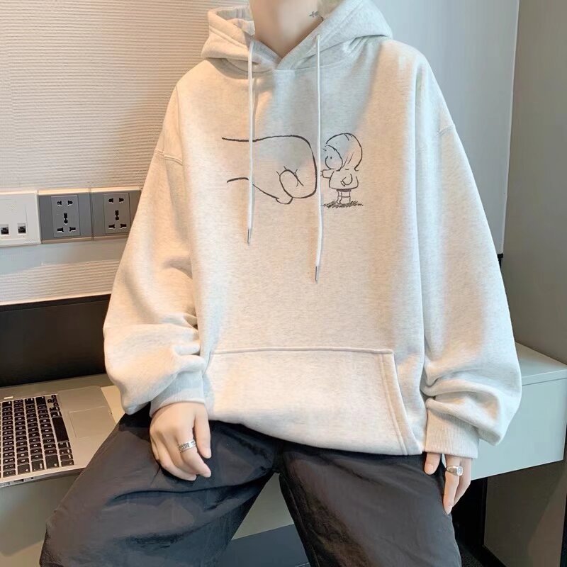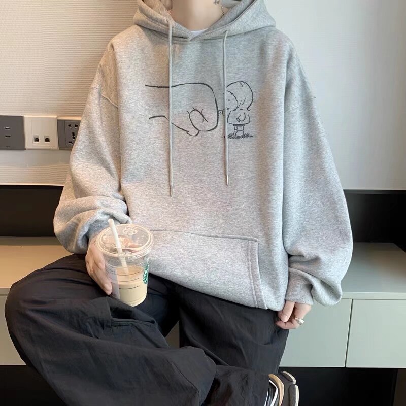 가을 후드 스웨터 남성 패션 한국 스타일 느슨한 올 매치 학생 플러스 벨벳 재킷 없음 필링 얇은 탑스토어 가기