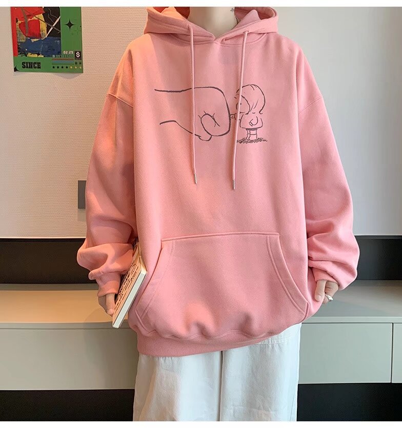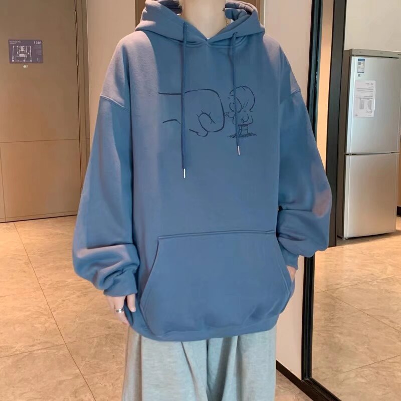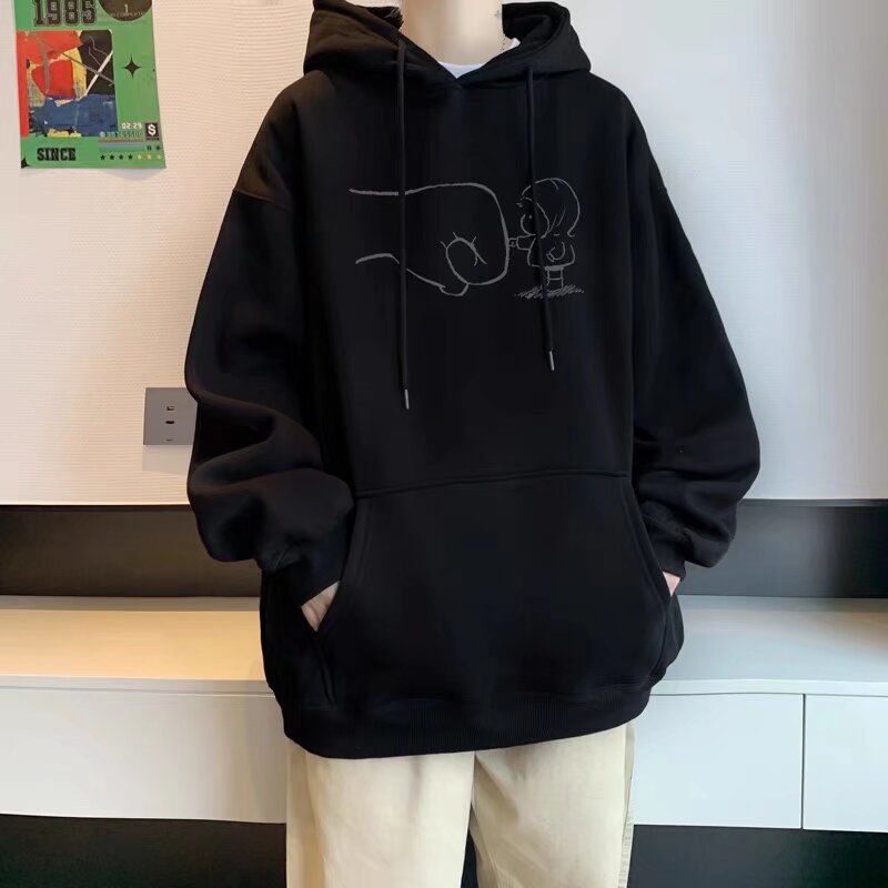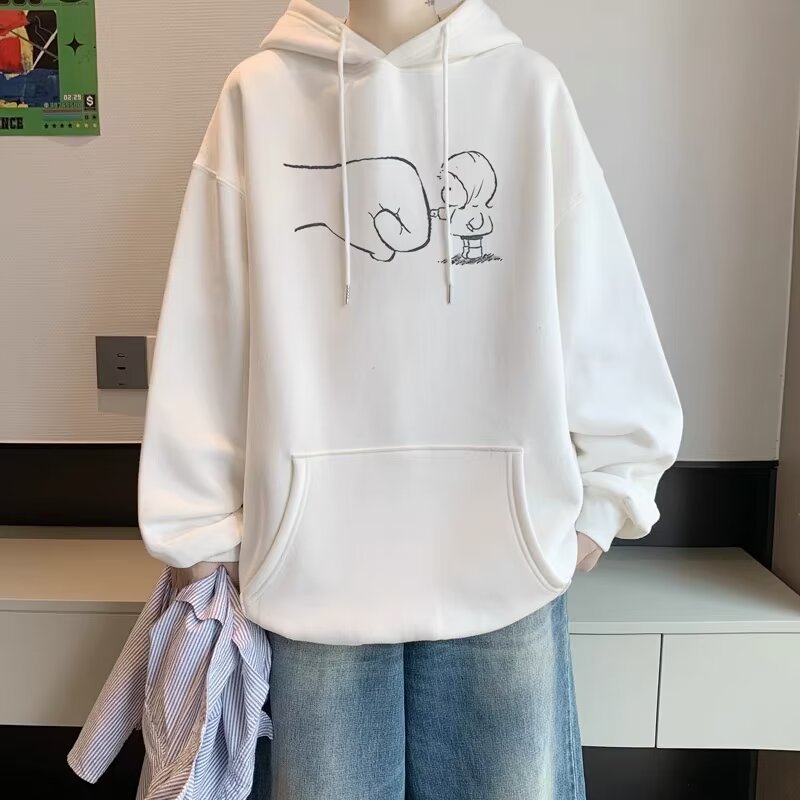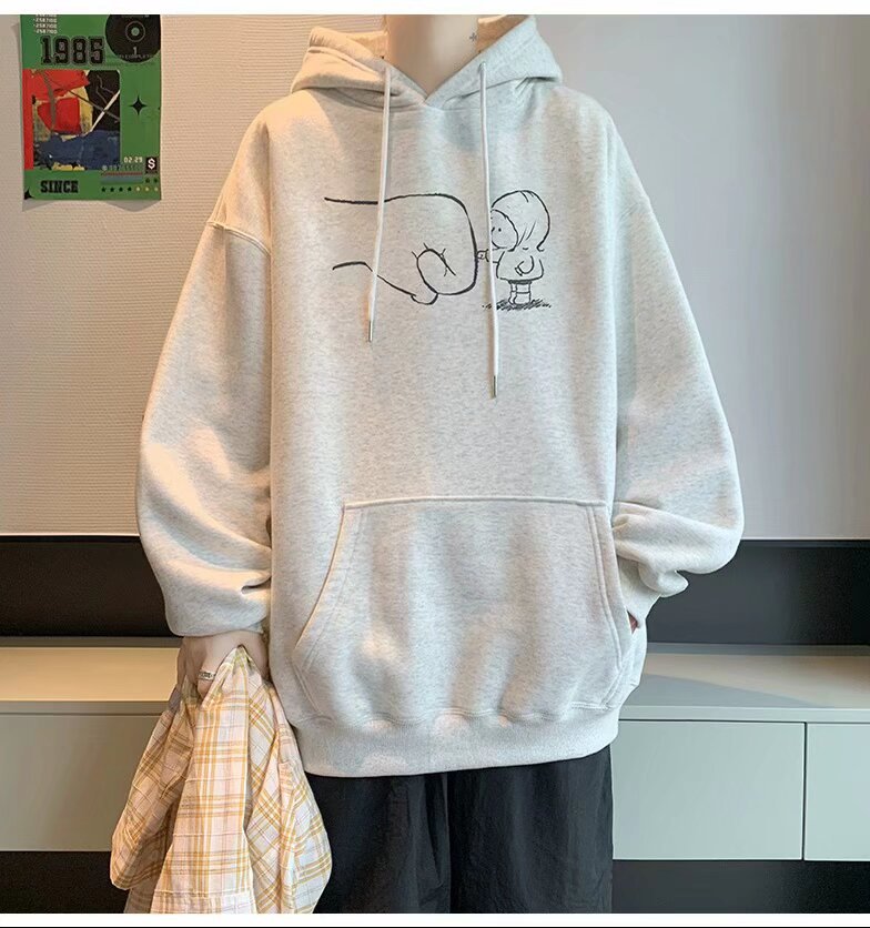 가을 후드 스웨터 남성 패션 한국 스타일 느슨한 올 매치 학생 플러스 벨벳 재킷 없음 필링 얇은 탑스토어 가기