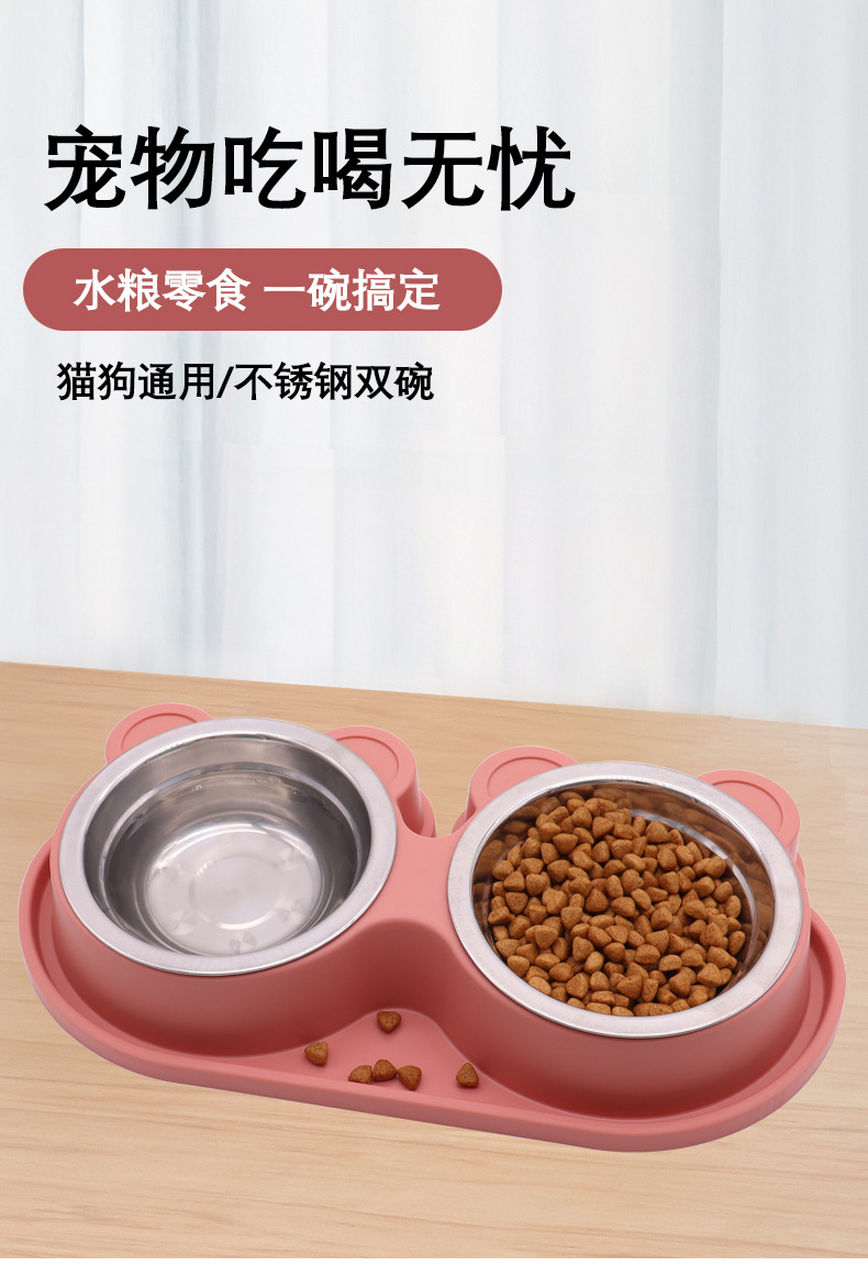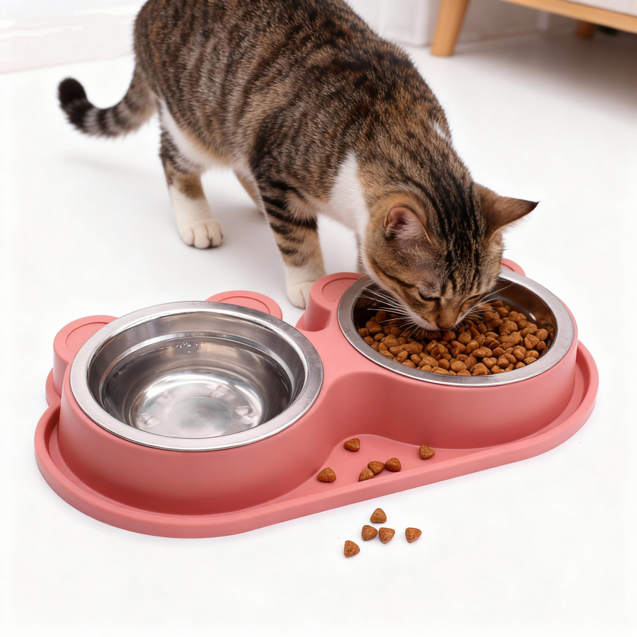 고양이 그릇 이중 그릇 통합 고양이 식수 안티 팁 작은 개 고양이 먹이 그릇 개 그릇 애완 동물 피더 고양이 물 그릇