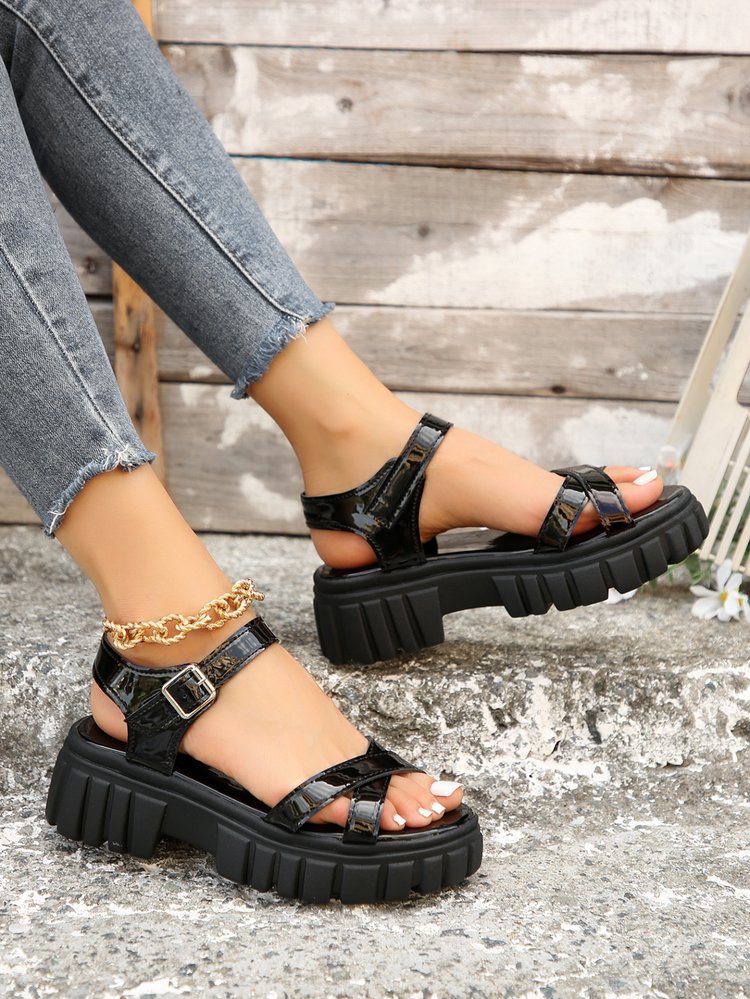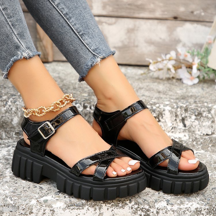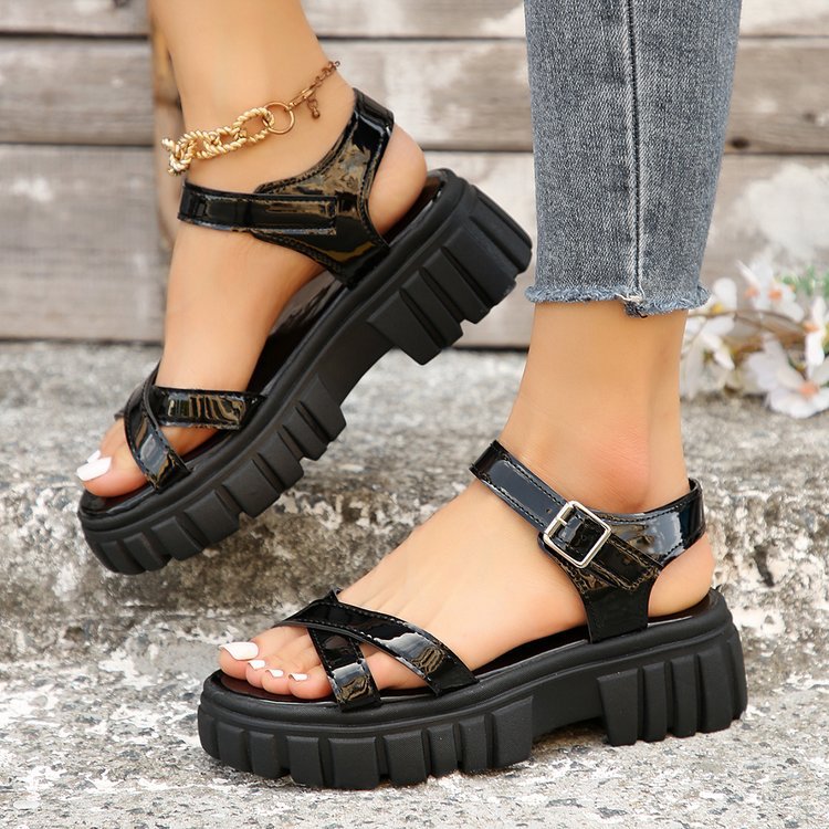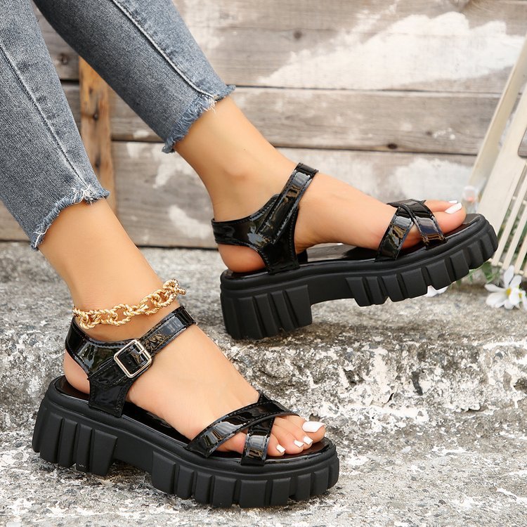 대외 무역 플랫폼 샌들 2024 새로운 올 매치 플랫폼 두꺼운 힐 플랫폼 신발 로마 신발 겉옷 여성 신발 36-43스토어 가기