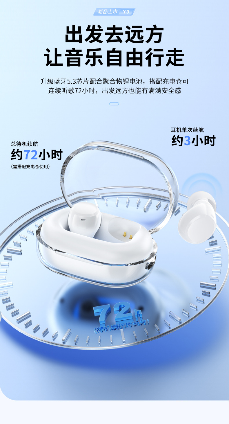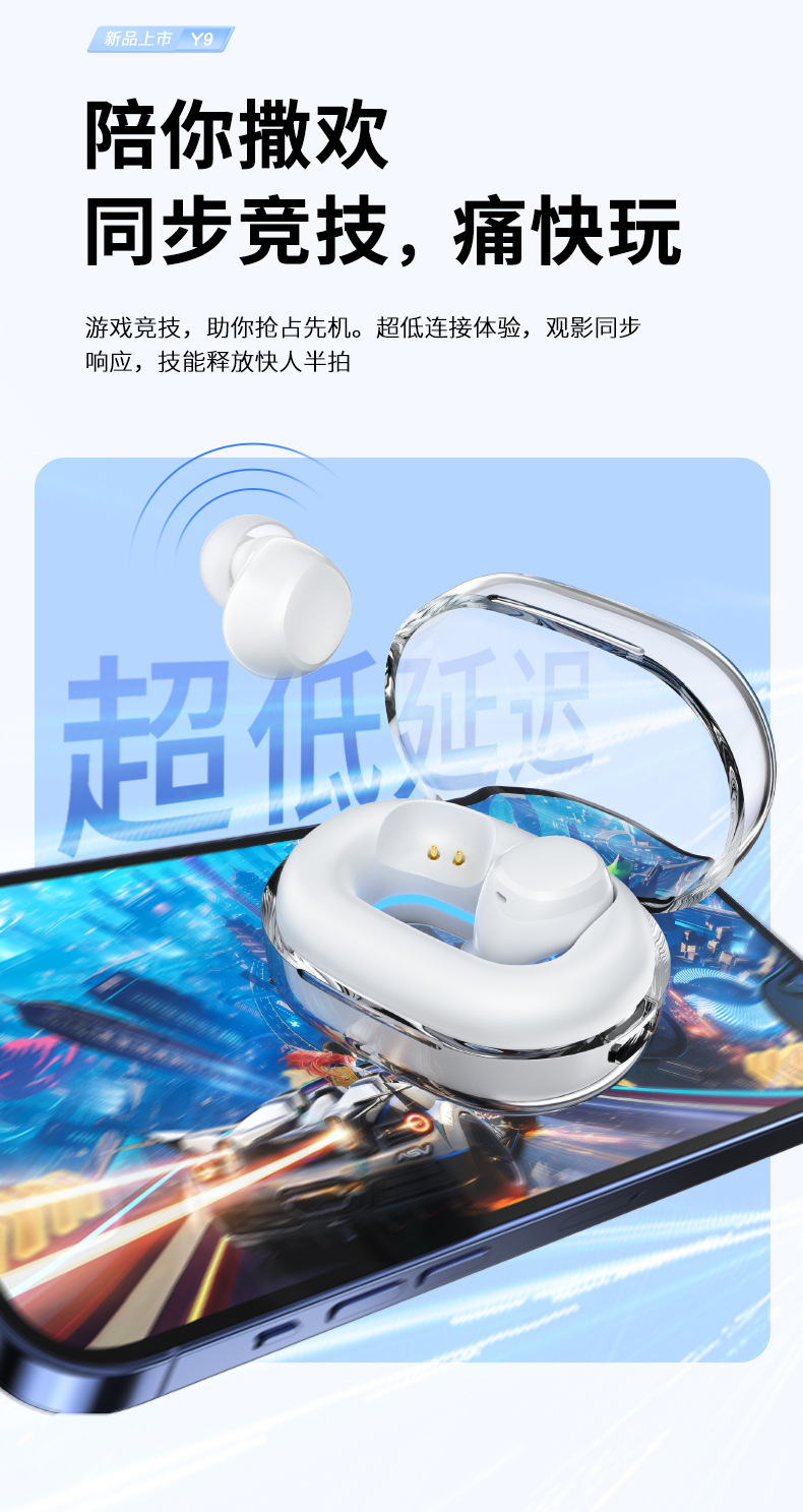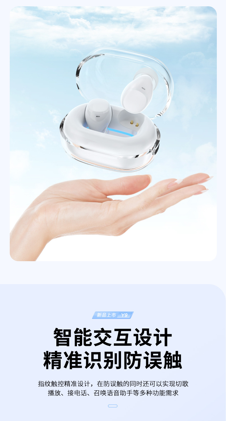 국경 간 개인 모델 Y9 블루투스 5.3 미니 미니 투명 수영 링 TWS 실제 무선 블루투스 헤드셋 긴 배터리 수명스토어 가기