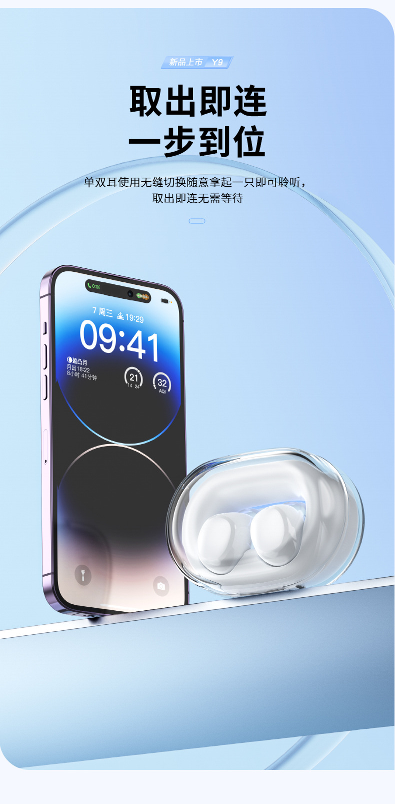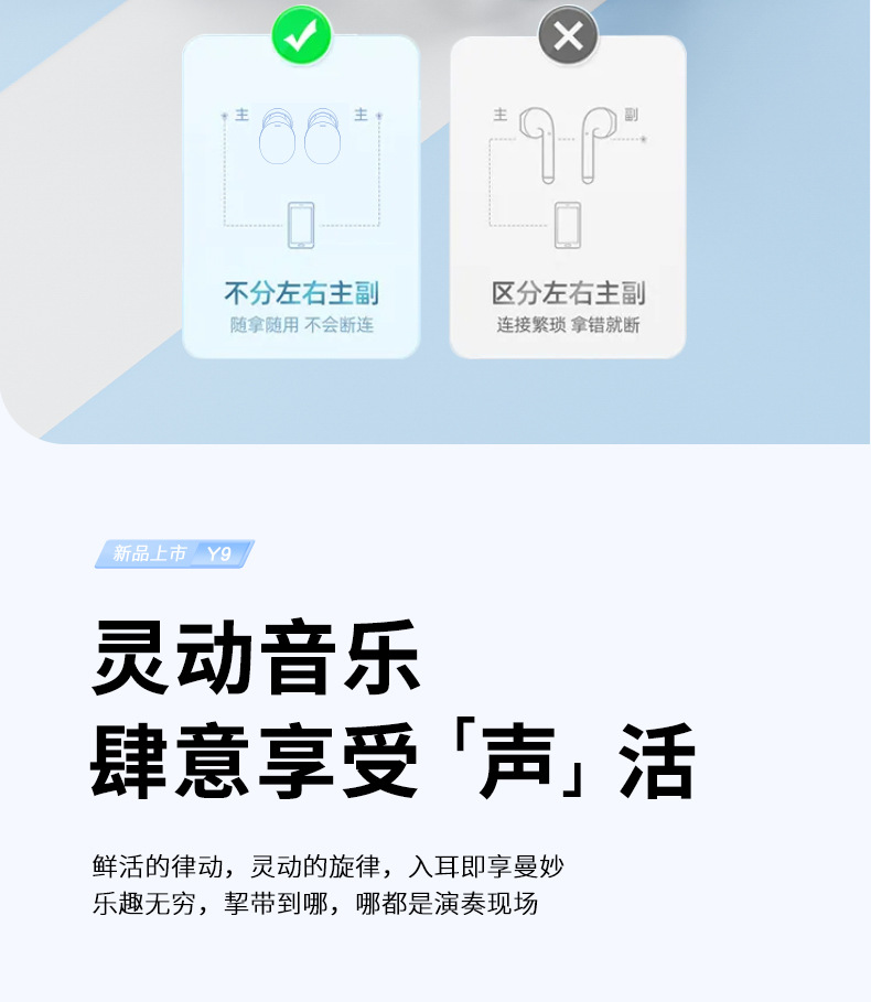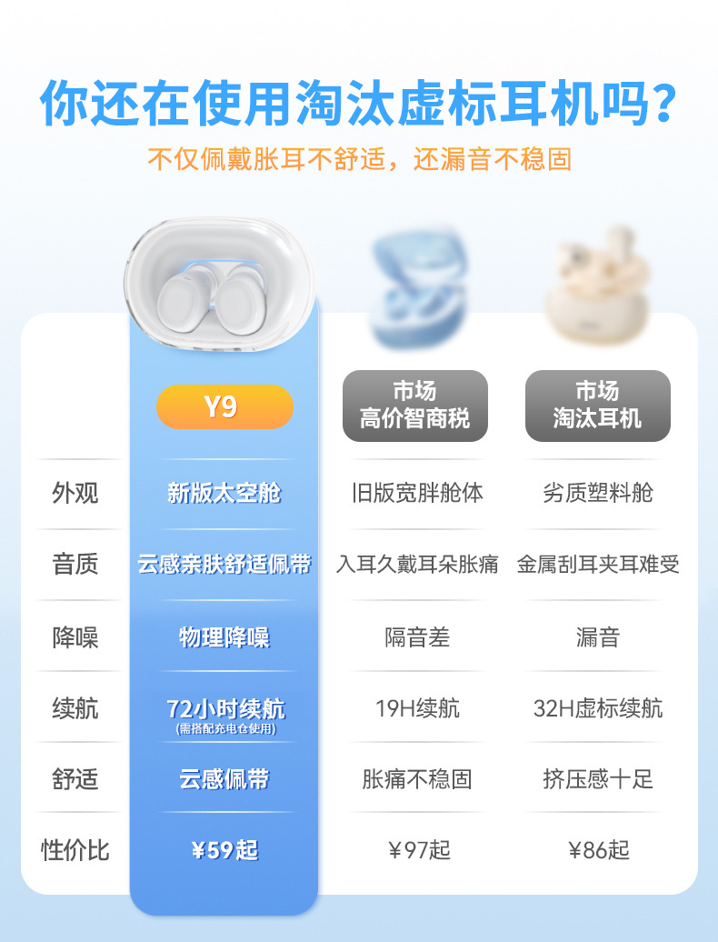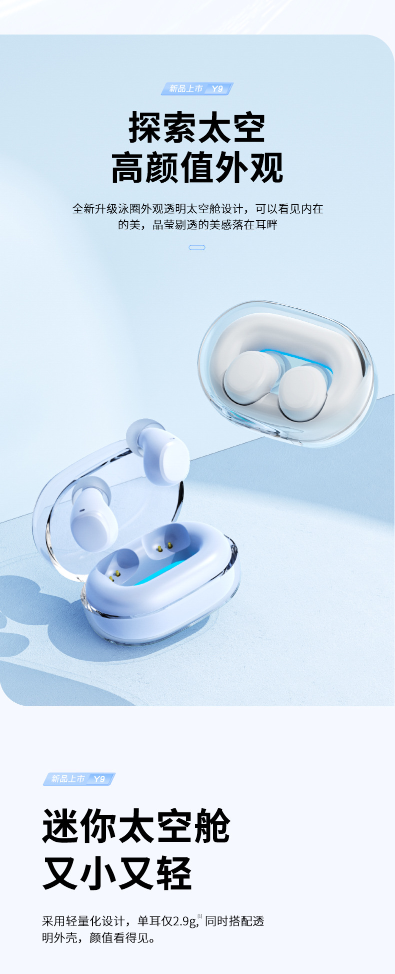 국경 간 개인 모델 Y9 블루투스 5.3 미니 미니 투명 수영 링 TWS 실제 무선 블루투스 헤드셋 긴 배터리 수명스토어 가기