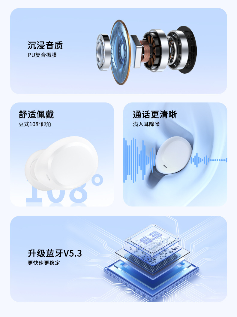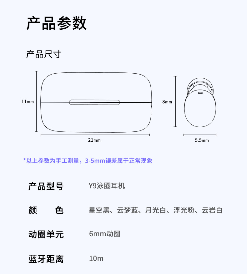 국경 간 개인 모델 Y9 블루투스 5.3 미니 미니 투명 수영 링 TWS 실제 무선 블루투스 헤드셋 긴 배터리 수명