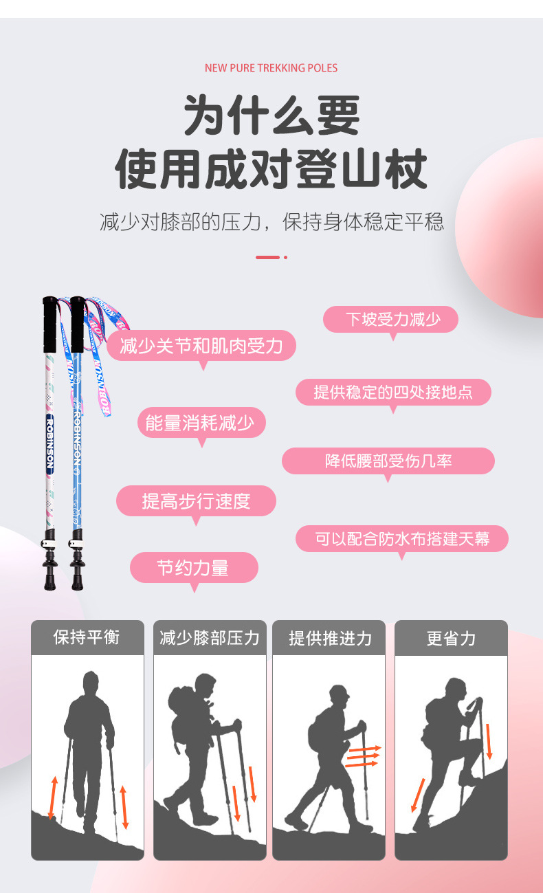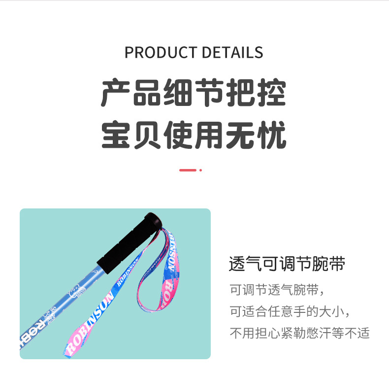 로빈슨 어린이 등반 폴 알루미늄 합금 외부 잠금 초경량 짧은 텔레스코픽 휴대용 청소년 소년 소녀 지팡이스토어 가기