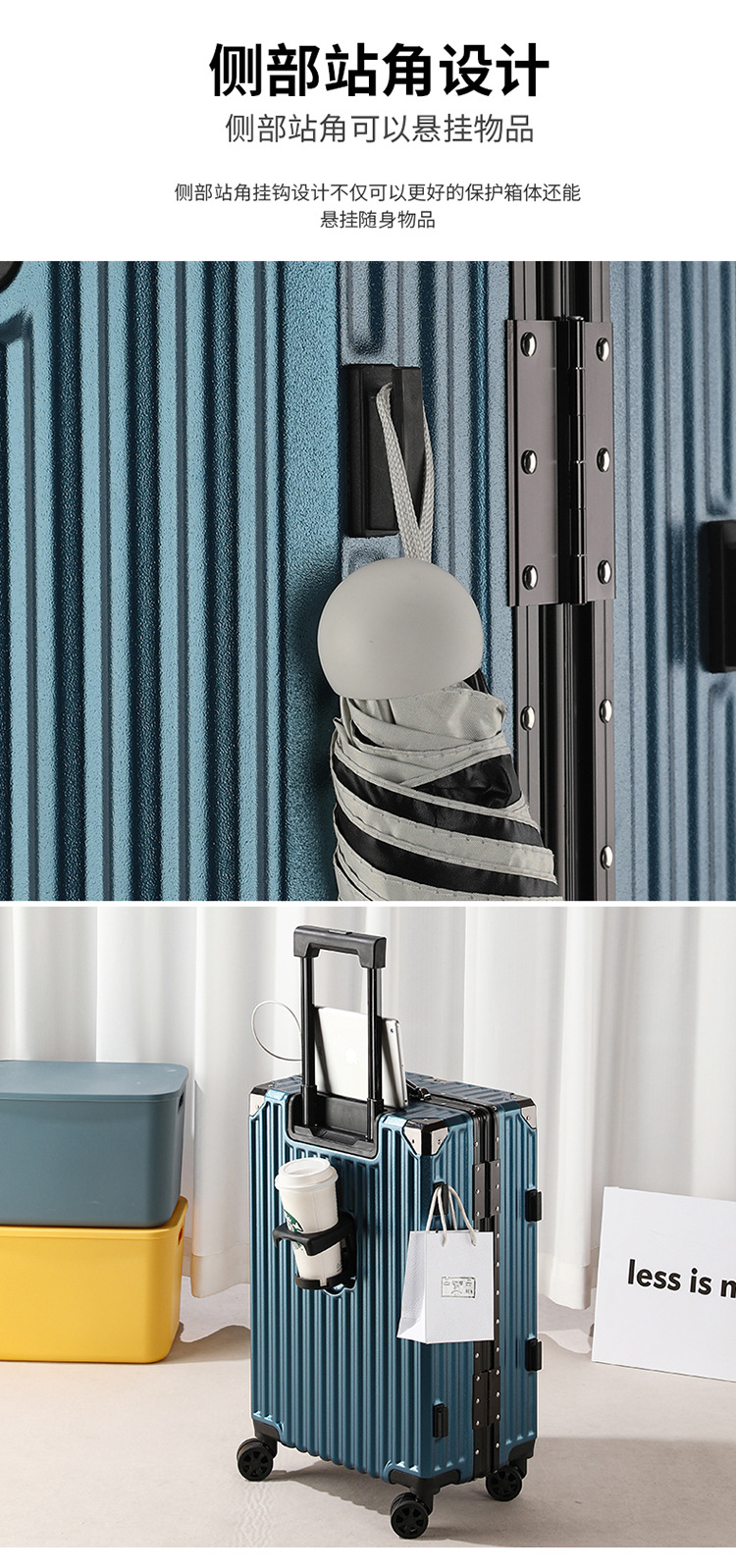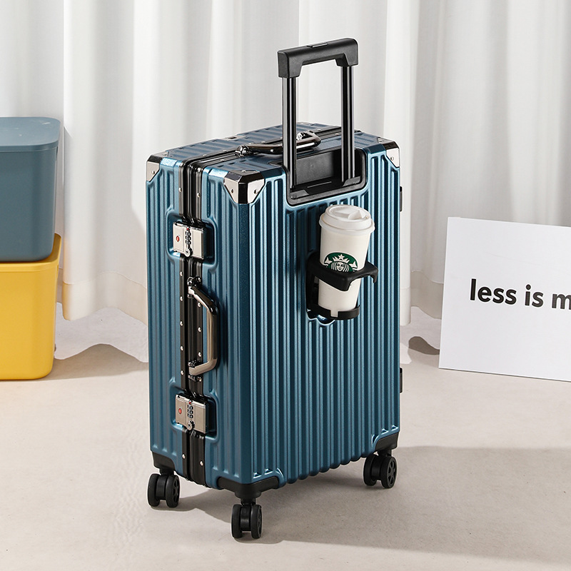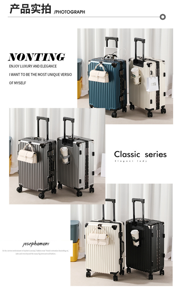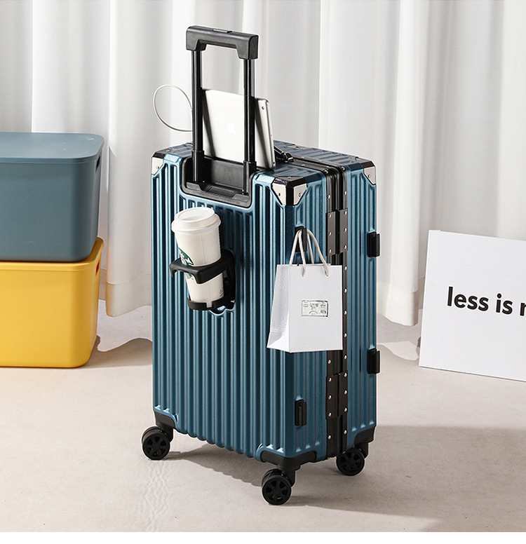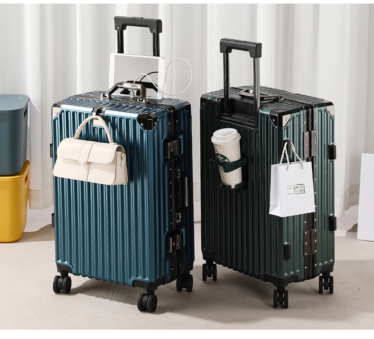 드롭 배송 알루미늄 프레임 트롤리 케이스 범용 휠 가방 여성 24inch 안티 스크래치 충전 암호 상자 탑승 케이스 가방스토어 가기
