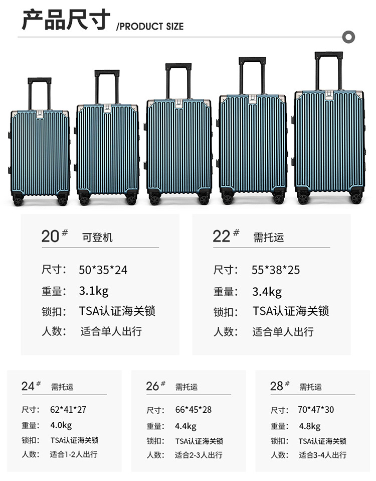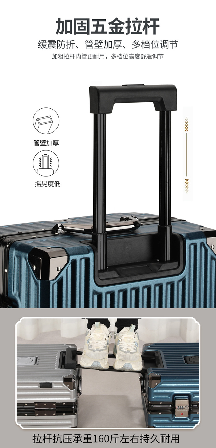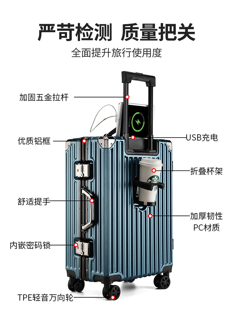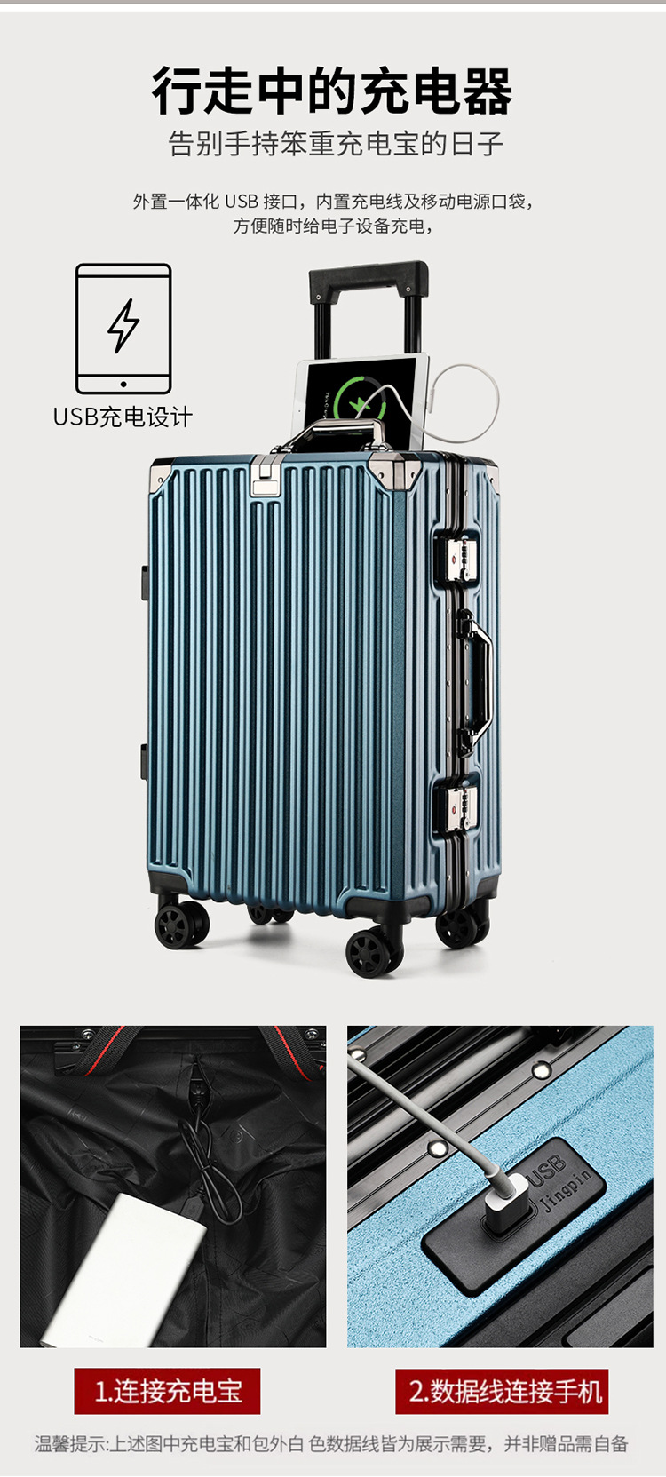드롭 배송 알루미늄 프레임 트롤리 케이스 범용 휠 가방 여성 24inch 안티 스크래치 충전 암호 상자 탑승 케이스 가방스토어 가기