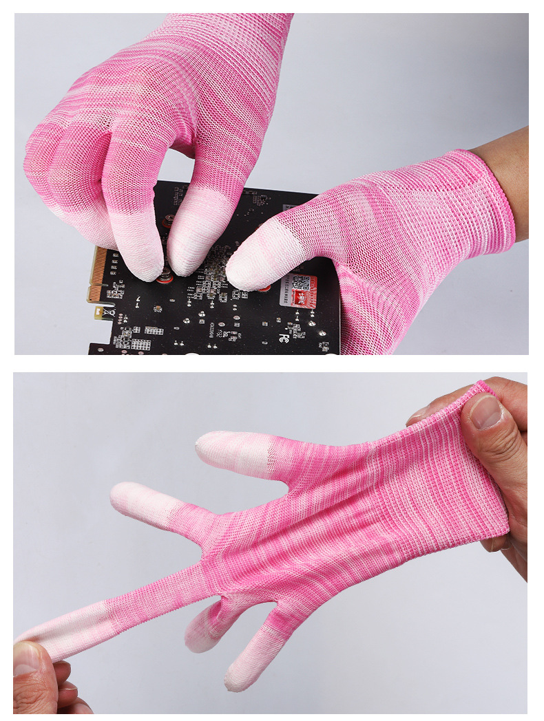 Mingxing Shuo PU 코팅 손가락 코팅 손바닥 장갑 노동 보호 작업 내마모성 미끄럼 방지 통기성 고무 코팅 장갑 먼지 없는 작업
