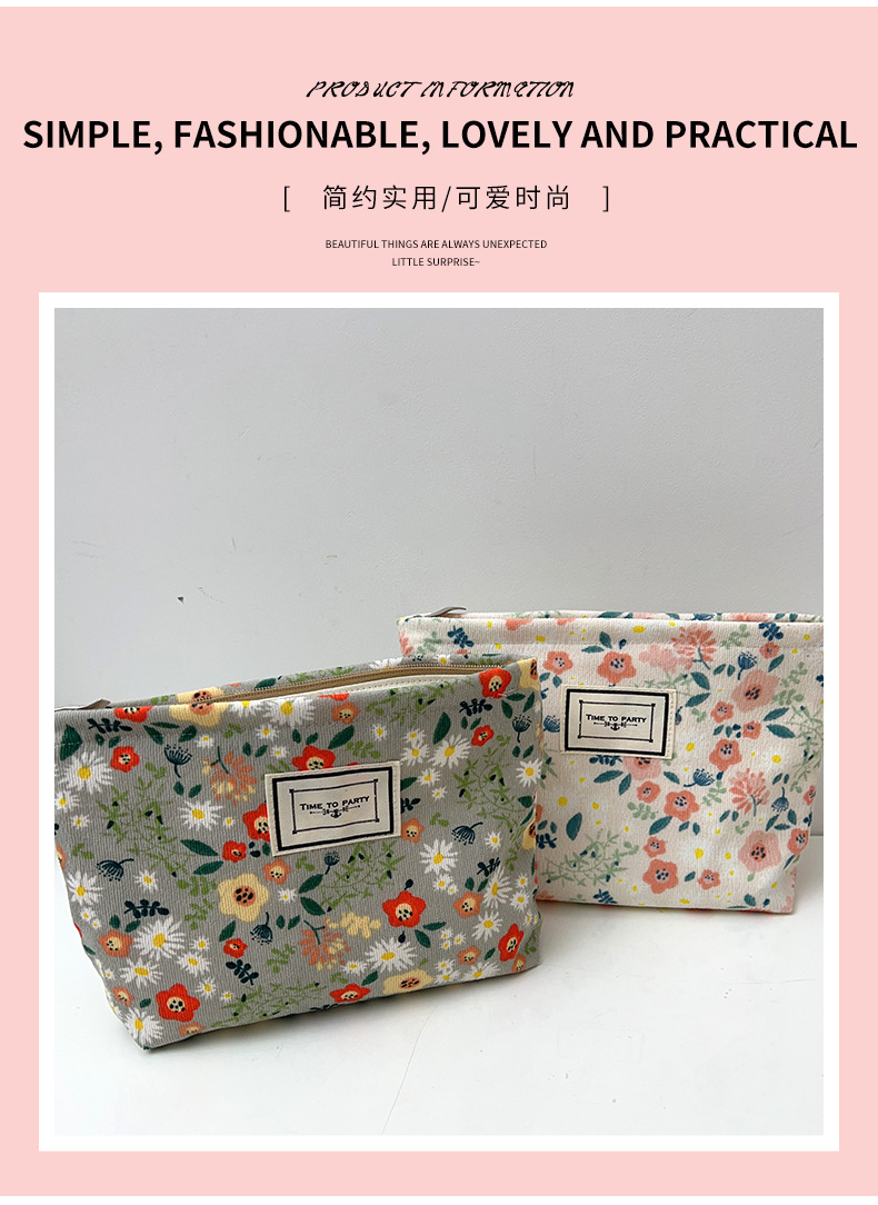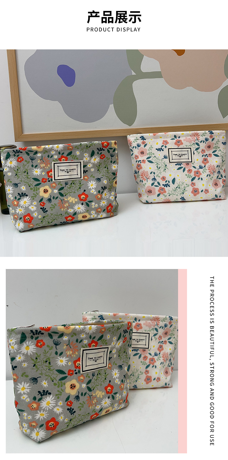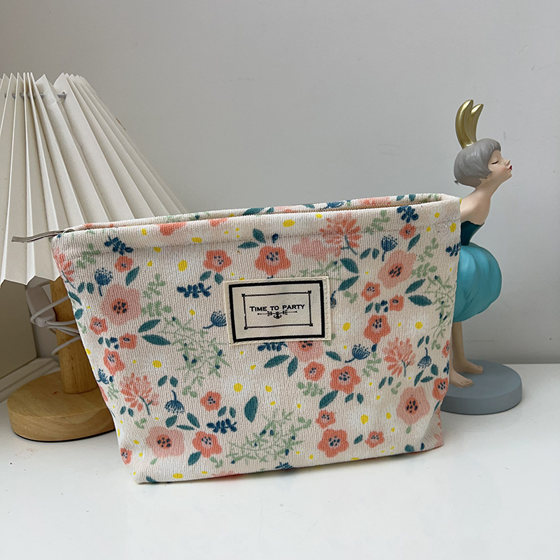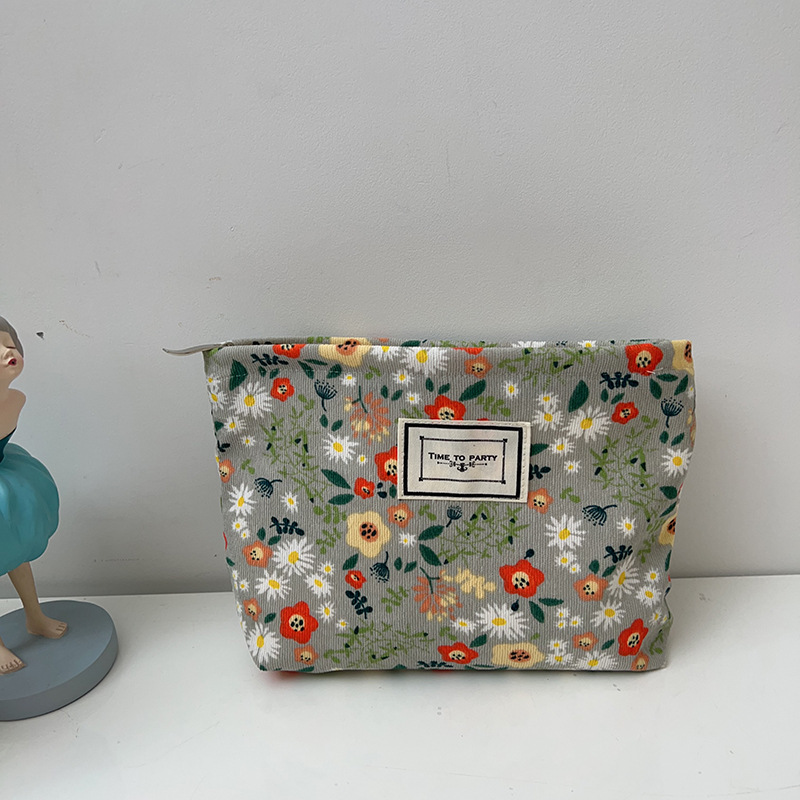 꽃 코듀로이 클러치 휴대용 여행 화장품 보관 가방 카메오 다크 브라운 베이지 색 대용량 화장품 가방스토어 가기