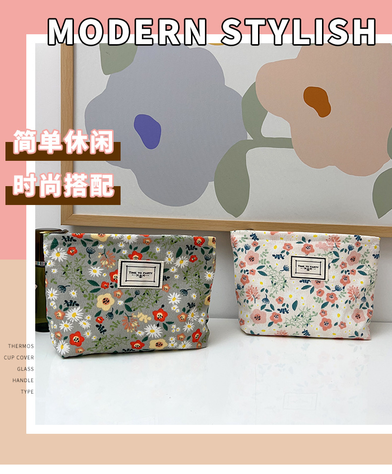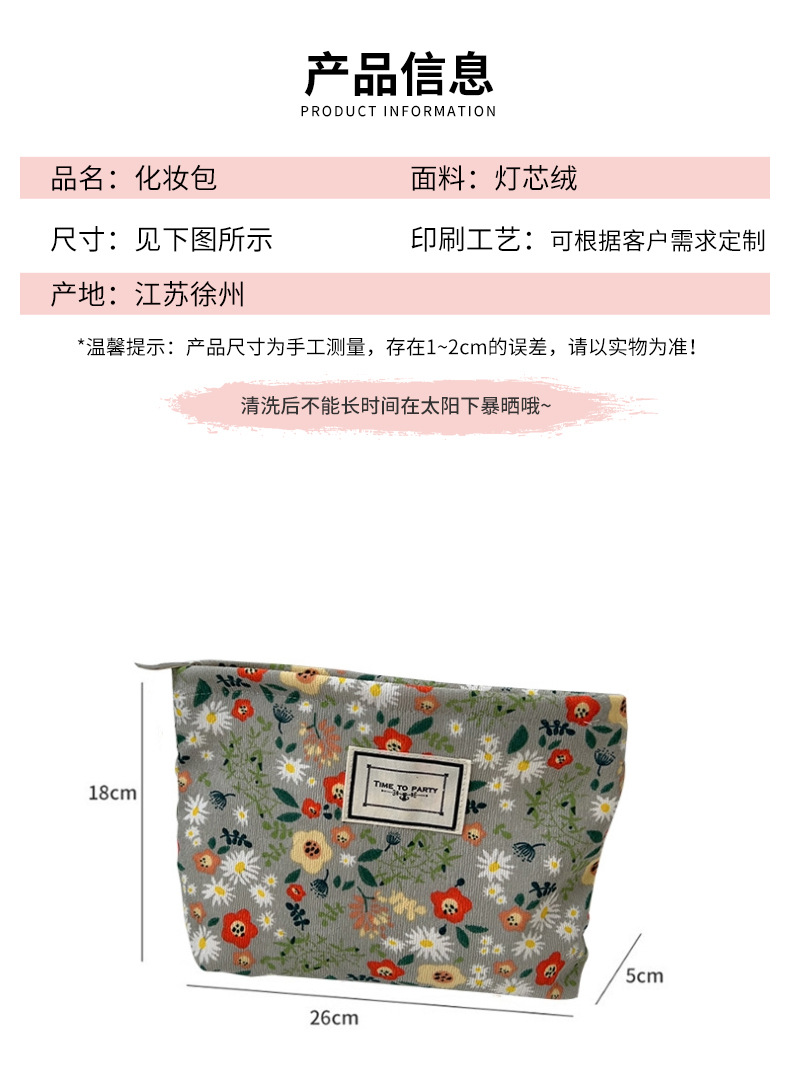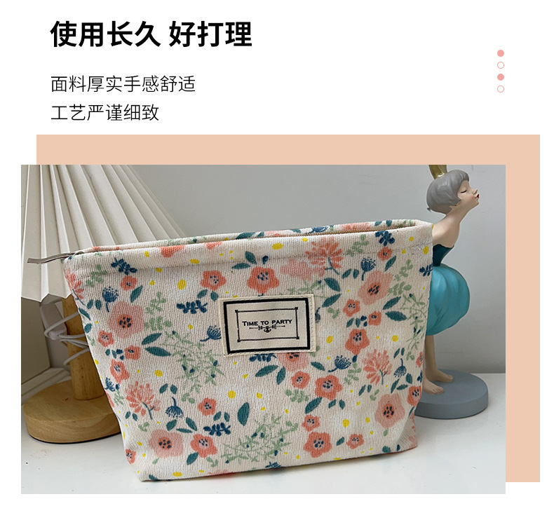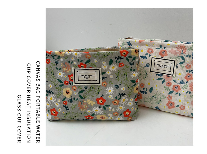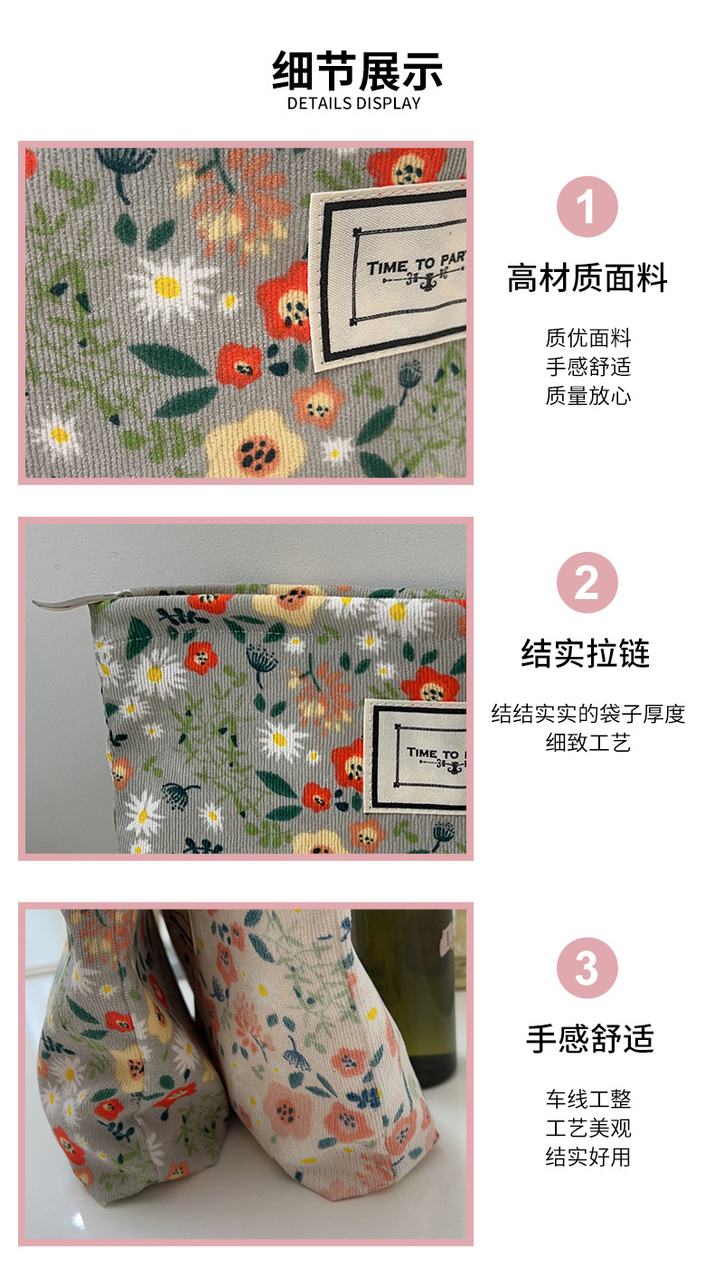 꽃 코듀로이 클러치 휴대용 여행 화장품 보관 가방 카메오 다크 브라운 베이지 색 대용량 화장품 가방스토어 가기