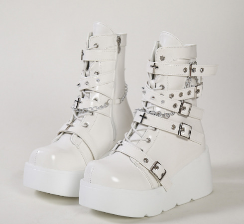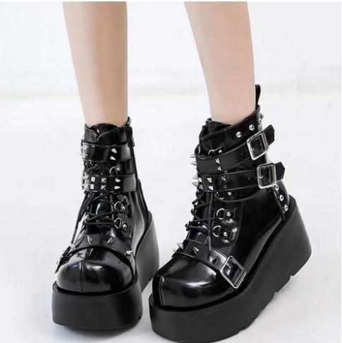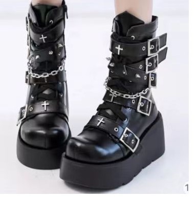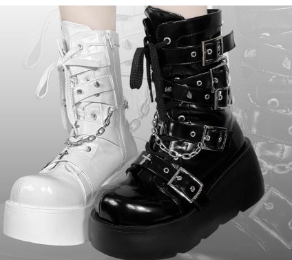 야행성 기사 오리지널 마틴 부츠 핫 걸 두꺼운 하단 라운드 발가락 쿨 부츠 버클 장식 레이스 업 마틴 부츠스토어 가기